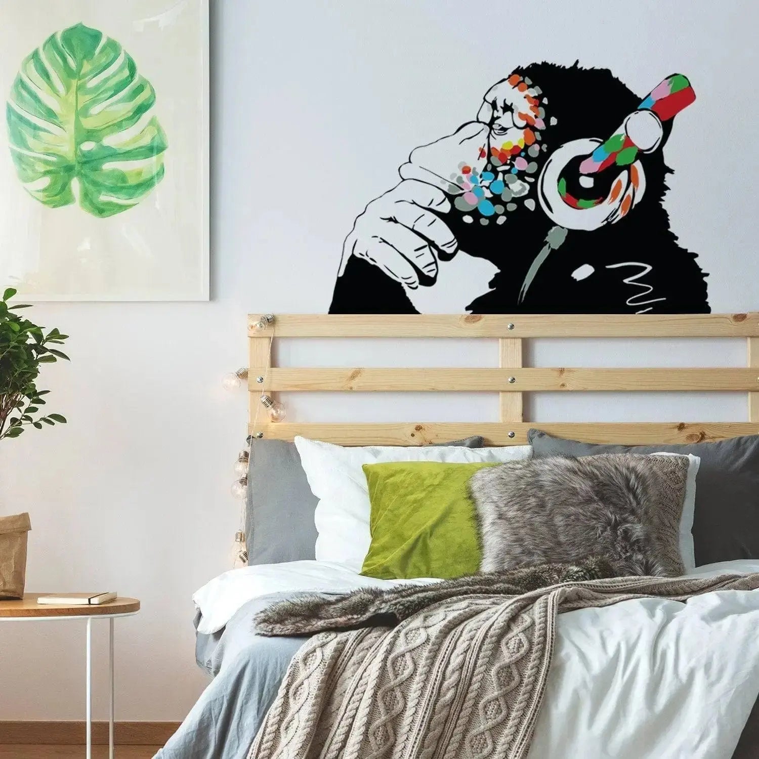 Banksy Thinking Monkey Wall Sticker - Art Vinyl Street Dj Baksy Decal - Headphones Chimp Music Thinker Graffiti Mural
