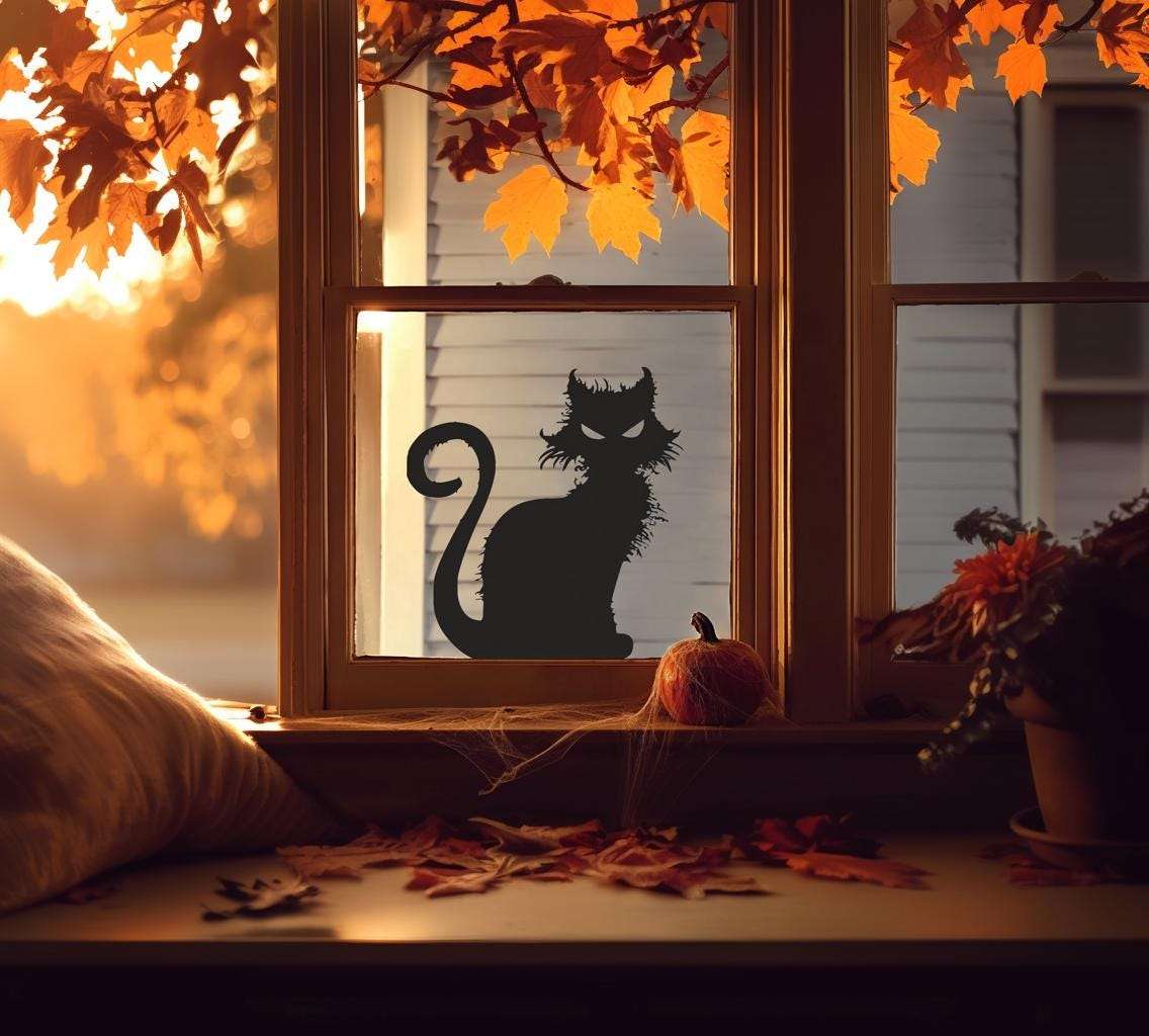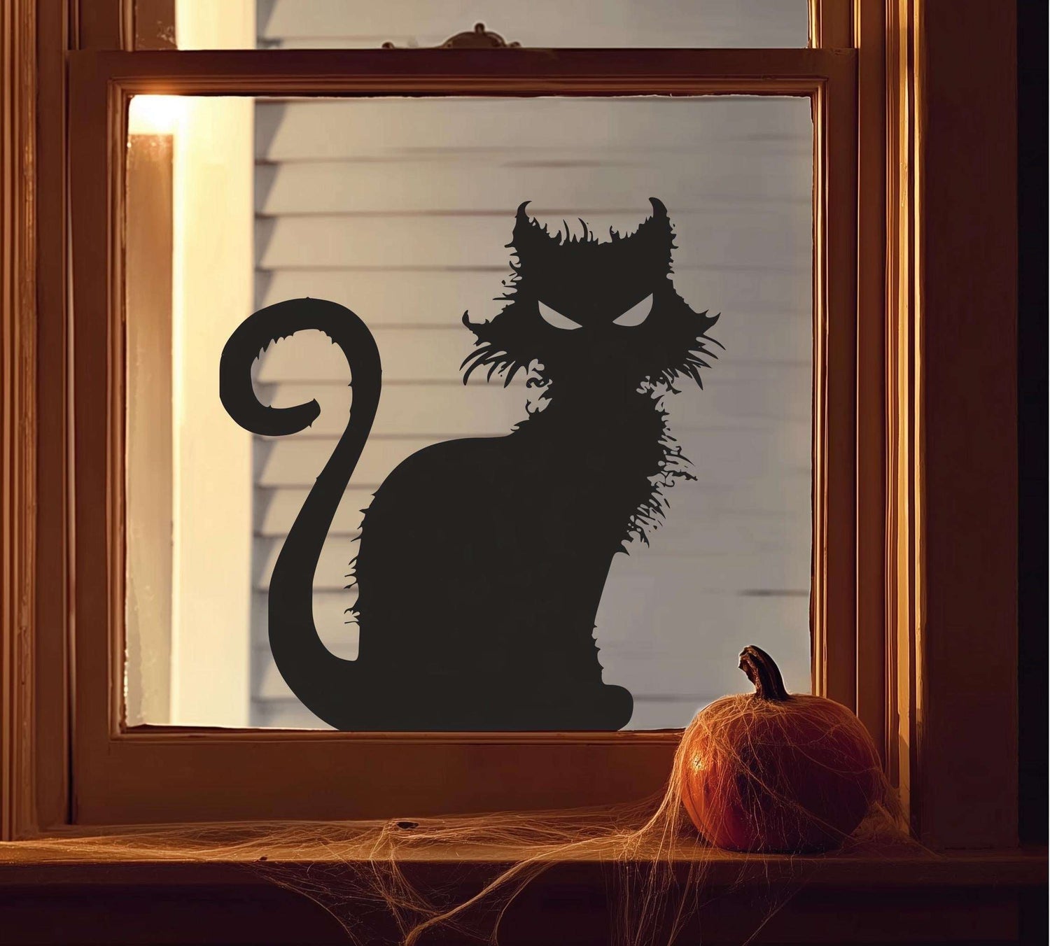 Halloween Cat Window Decal | Scary Black Cat Sticker | Spooky Vinyl Window Decor | Creepy Cat Silhouette | Halloween Window Decoration