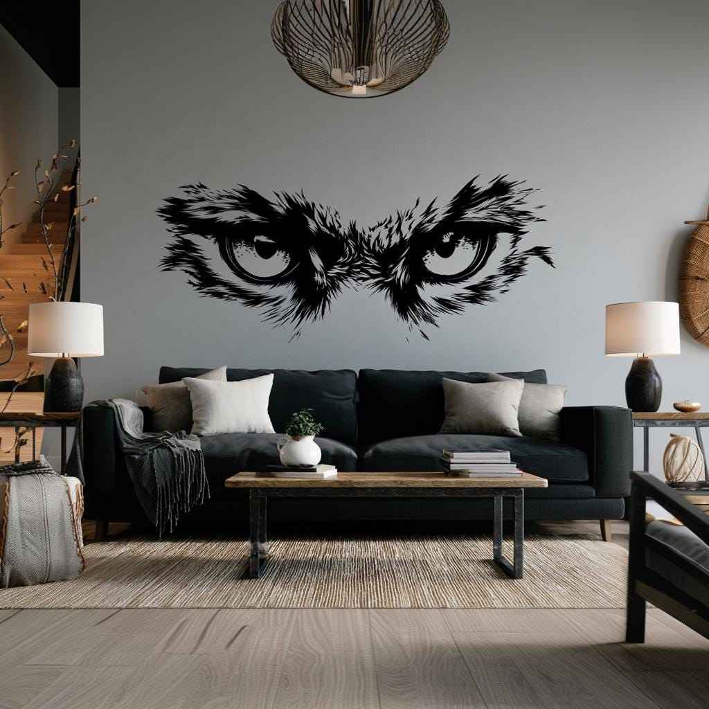 Pallas Cat Eyes Wall Decal | Manul Eyes Vinyl Sticker | Wild Cat Silhouette Wall Art | Minimalist Animal Wall Decor | Fierce Gaze Wall Decal