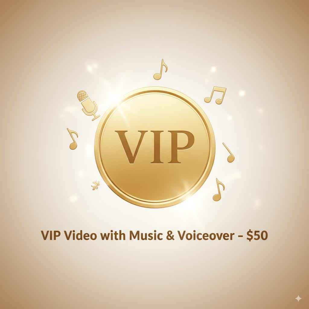 3. VIP Video with Music & Voiceover – \$50 (You need to buy product quantity: 5)