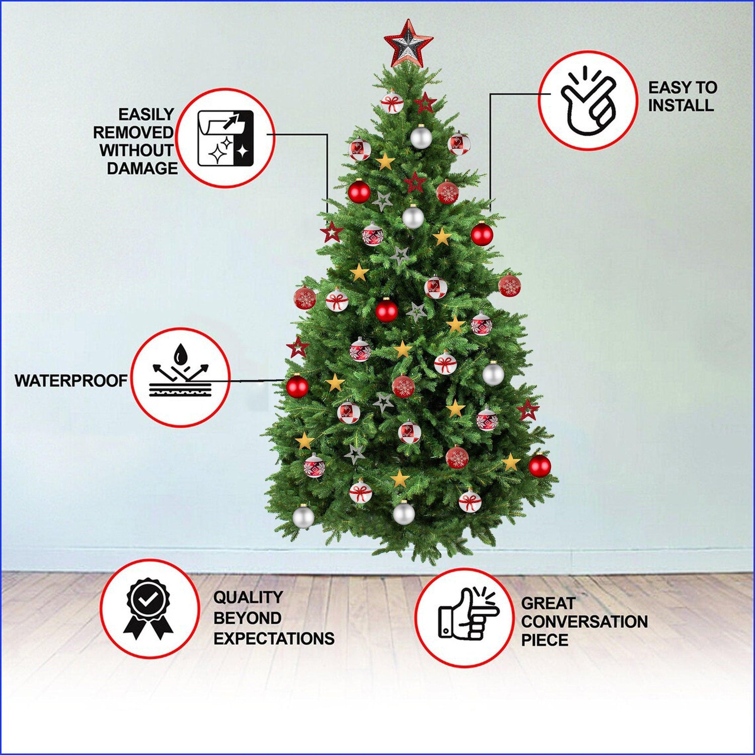 Celebrate the holiday season with this stunning Christmas Tree Wall Vinyl Decal! Featuring a large, beautifully detailed pine tree adorned with festive ornaments, this decal is the perfect addition to your holiday decor. Whether you're decorating your living room or creating a magical space in your kids' room, this removable decal adds instant Christmas charm without the mess of a traditional tree.