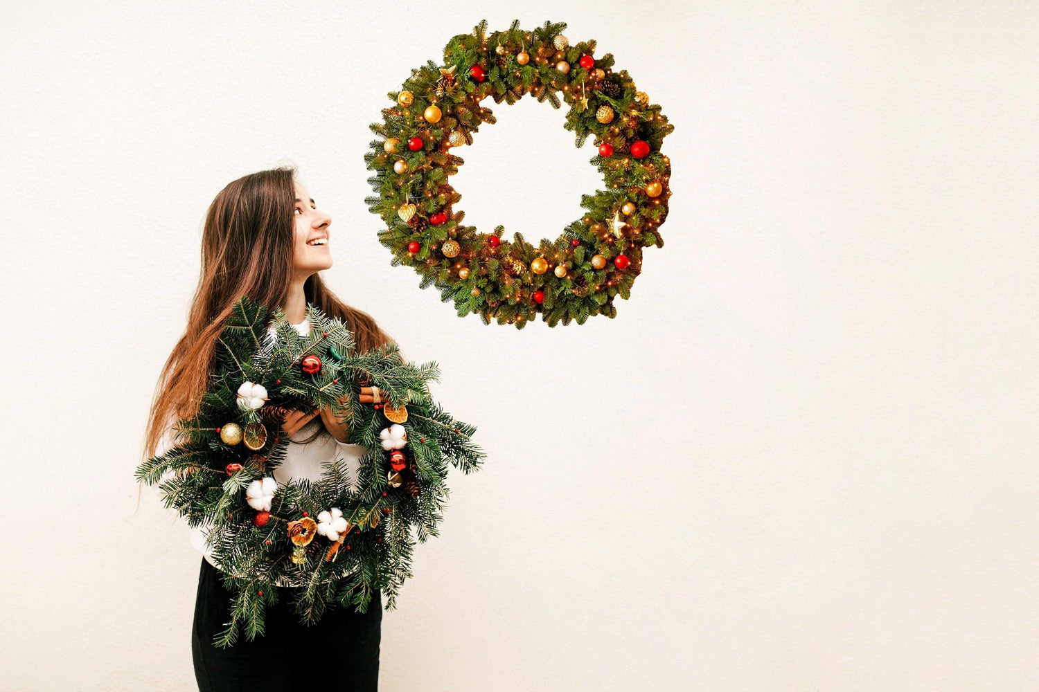 Invest in this beautiful wall decal and let the enchanting Christmas wreath, adorned with lights and ornaments, fill your home with the magical essence of the holiday season, creating cherished memories with your loved ones.