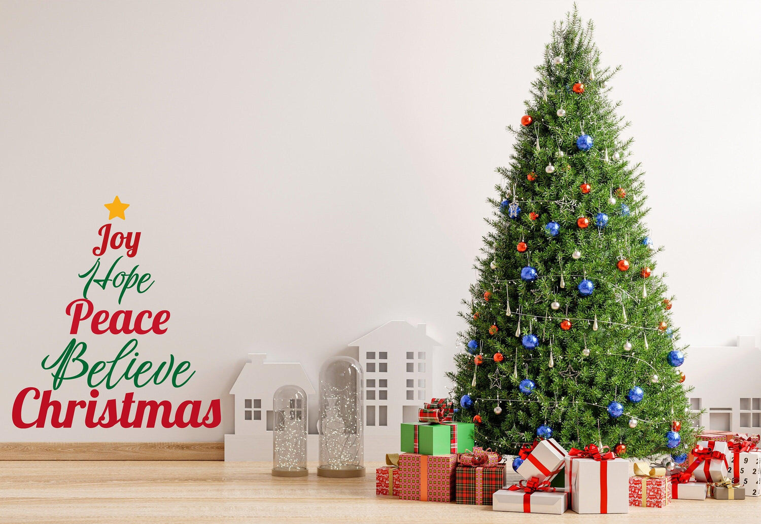This wall decal is more than just a decoration; it's a celebration of the hopeful and joyous spirit of Christmas. The "Joy Hope Peace Believe Christmas" message serves as a heartfelt reminder of the happiness and love that fill the holiday season, making it a cherished decor piece for years to come.