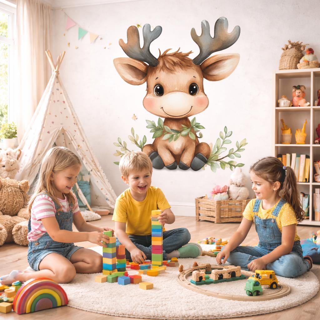 * Charming Character Design: The reindeer's large, expressive eyes and sweet smile add a sense of joy and friendliness to your wall.