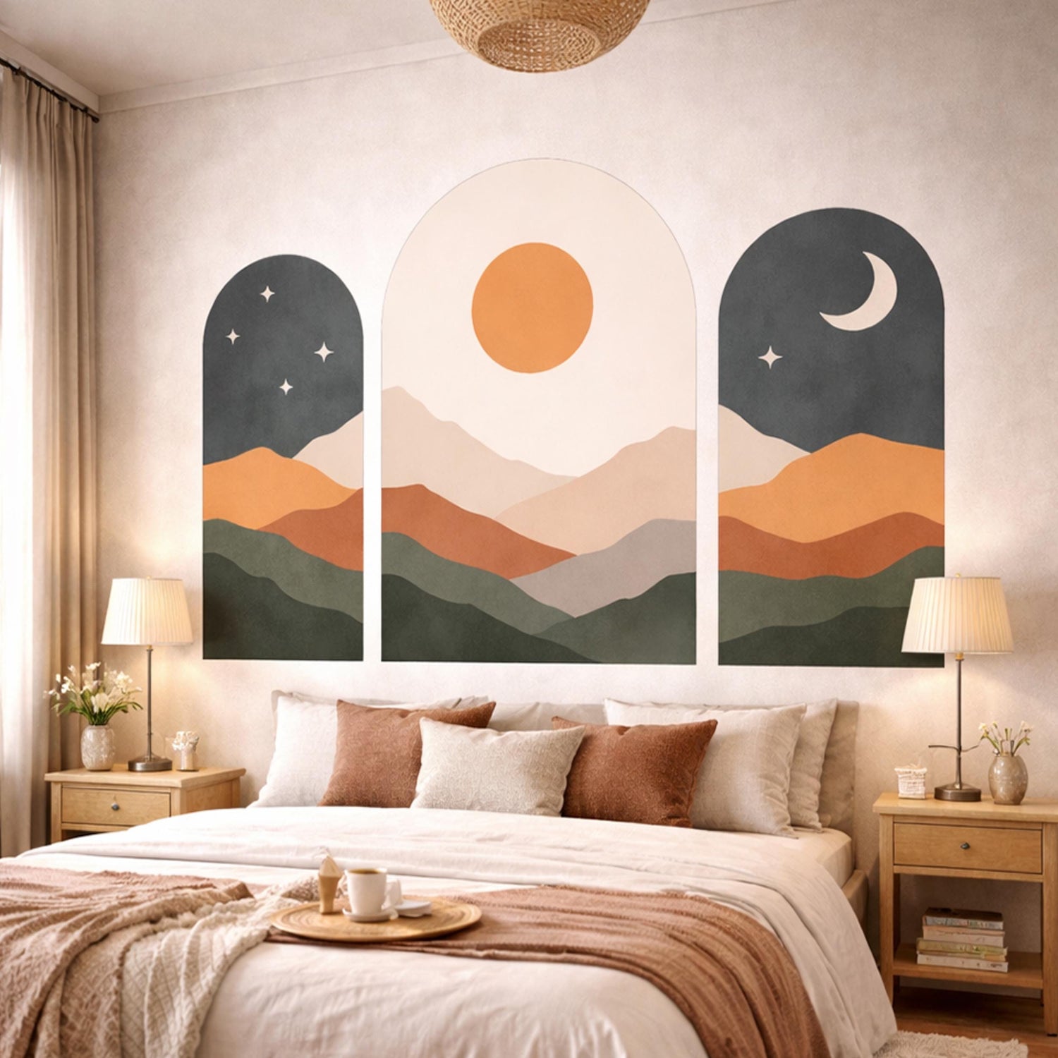 * On-Trend Aesthetic: Features the popular "Arched Window" look with a palette of terracotta, sage green, and warm sand.