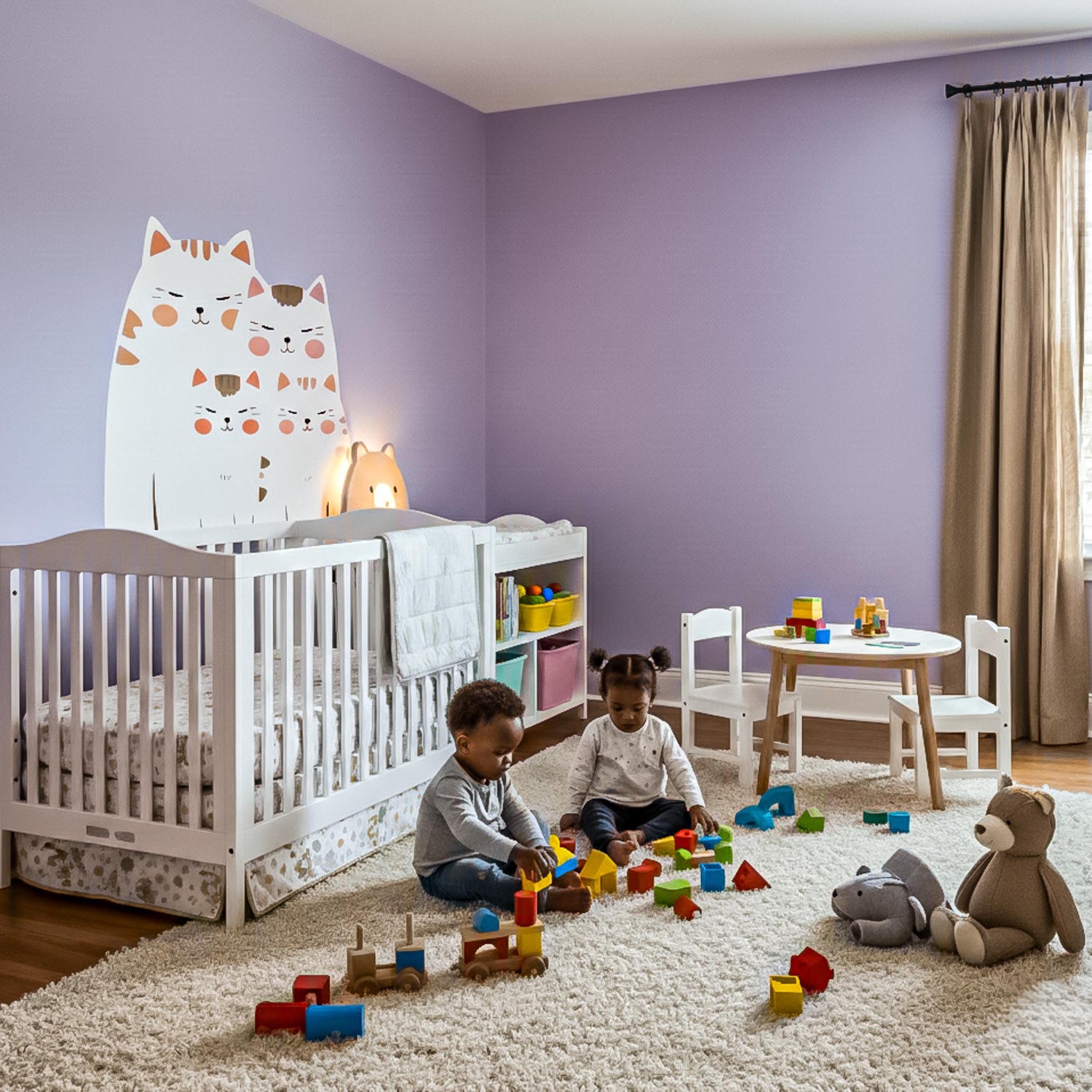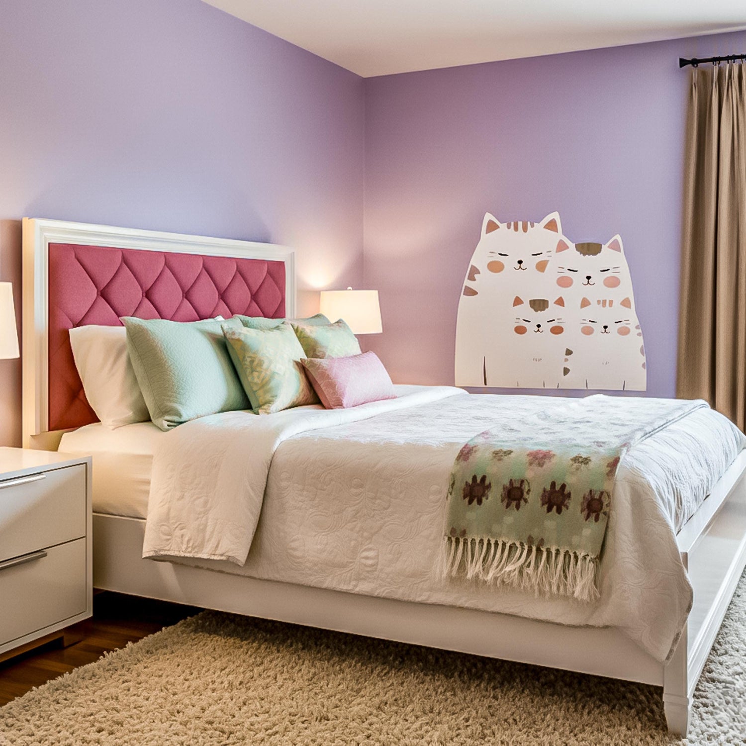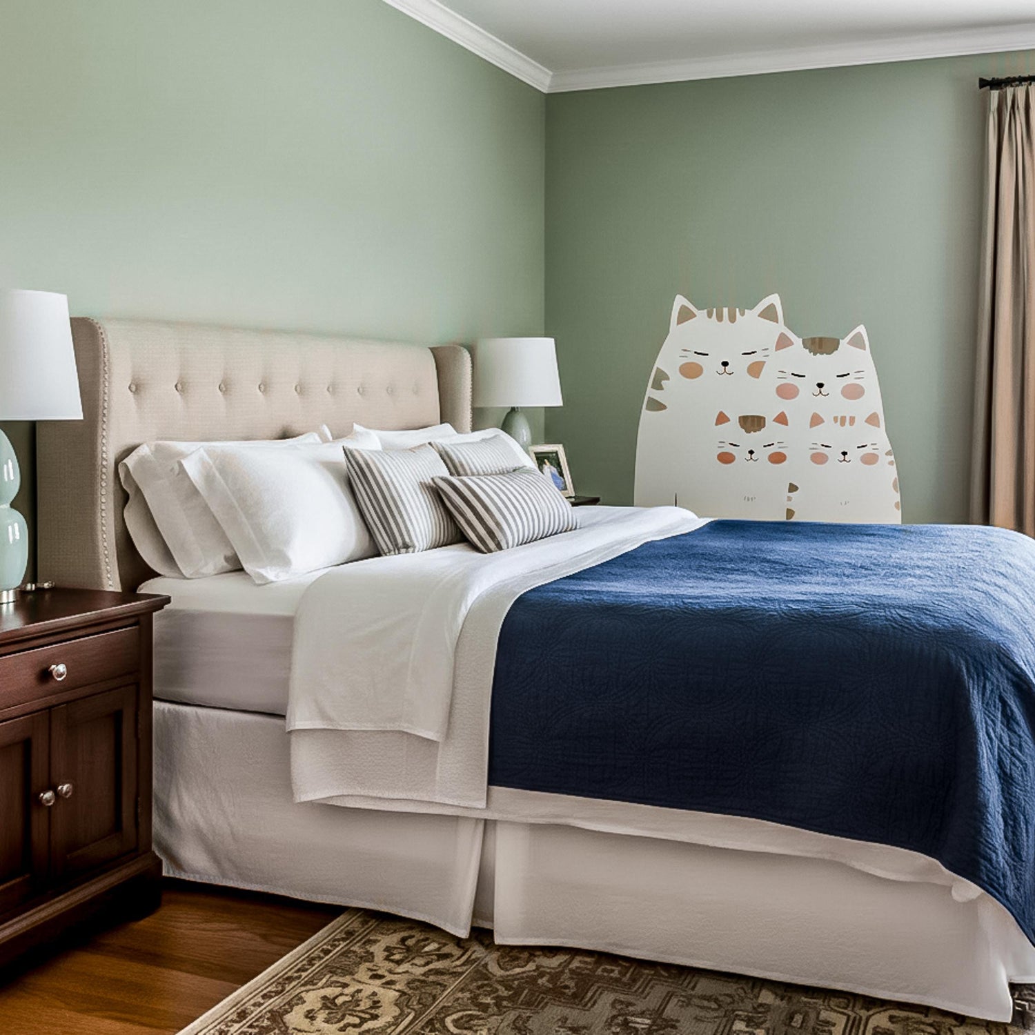 Imagine reading a bedtime story to your little one while these peaceful, happy cats watch over the room. It instantly changes the mood from a plain room to a magical, safe haven where imagination can roam free. You get the delightful visual impact of a custom mural without the mess of paint or the permanence of wallpaper. It creates a soft, playful vibe that makes everyone smile when they walk in, turning a house into a truly loving home.