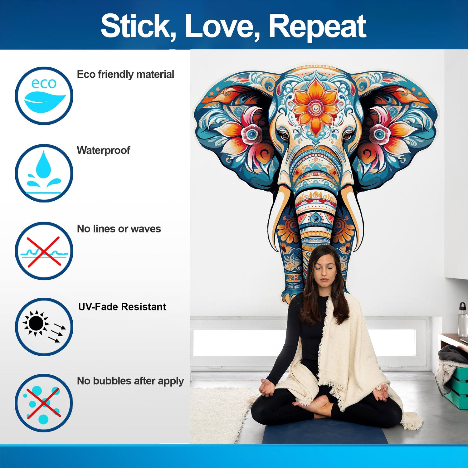 Embrace the elegance and vibrant hues of our Floral Elephant Decal. Order today and transform your indoor space into a haven of art and beauty!