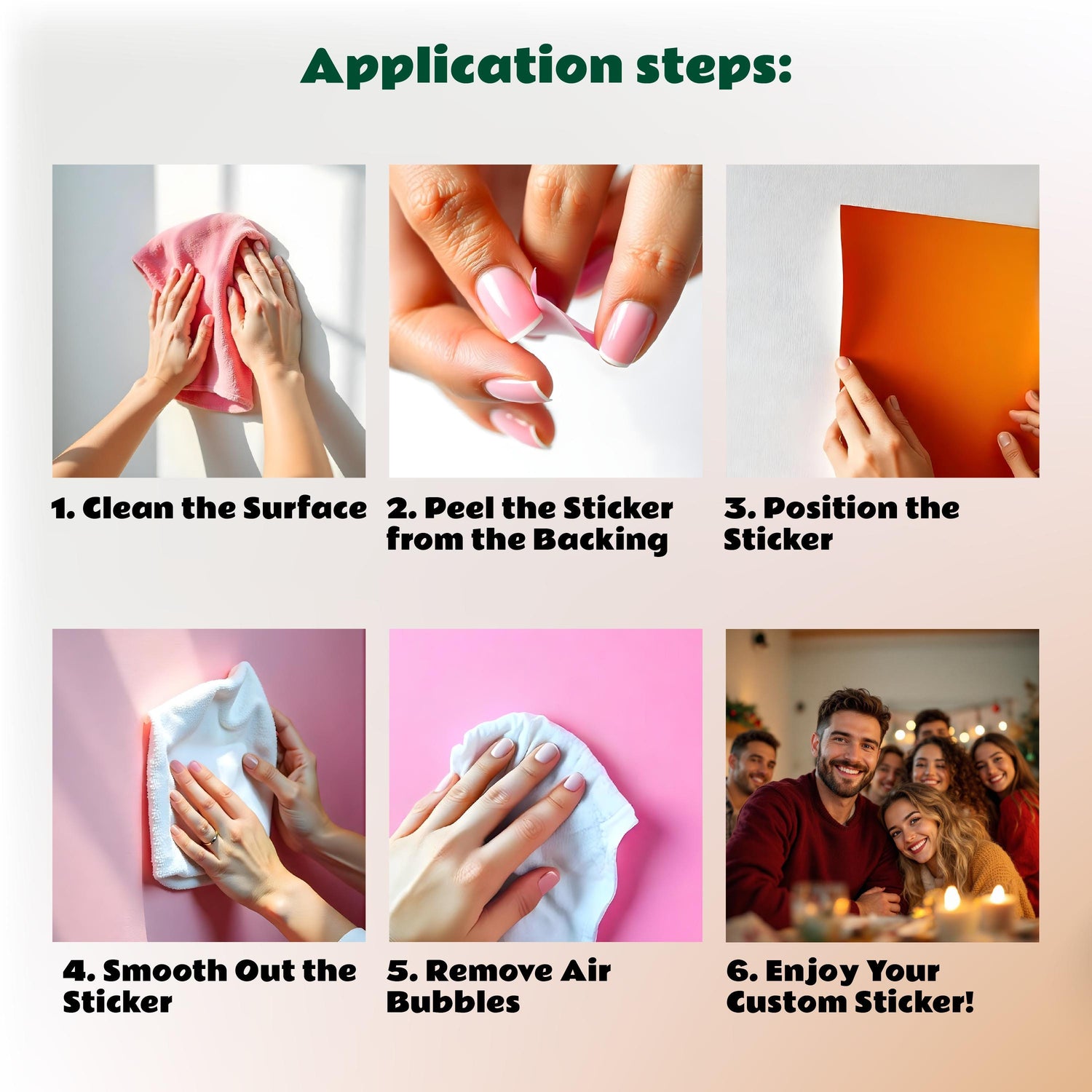 2. Temperature Check: For best results, apply the stickers in a room temperature environment. Extreme temperatures can affect the adhesive quality.
