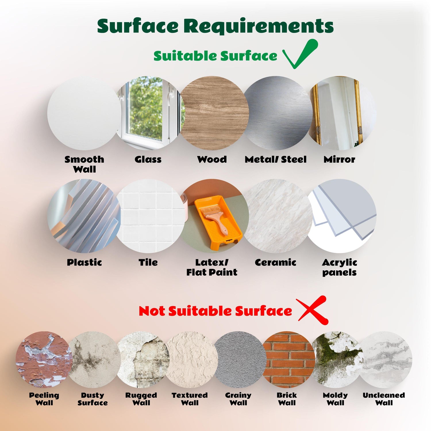 1. Surface Preparation: The surface should be clean, dry, and free of dust or grease. Wipe the wall with a dry cloth and allow any freshly painted surfaces to cure for at least 3-4 weeks before applying the sticker.