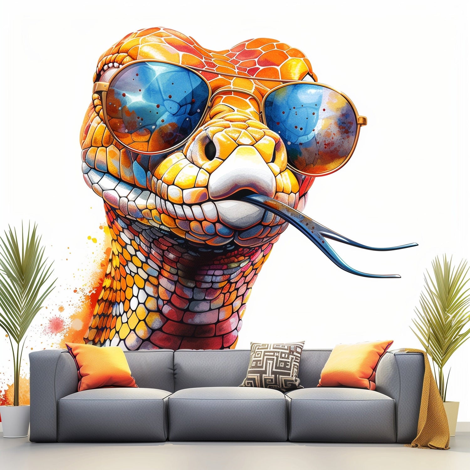 Vibrant Watercolor Orange Snake Sticker Decals with Glasses - Easy-to-Apply & Repositionable Room Decor