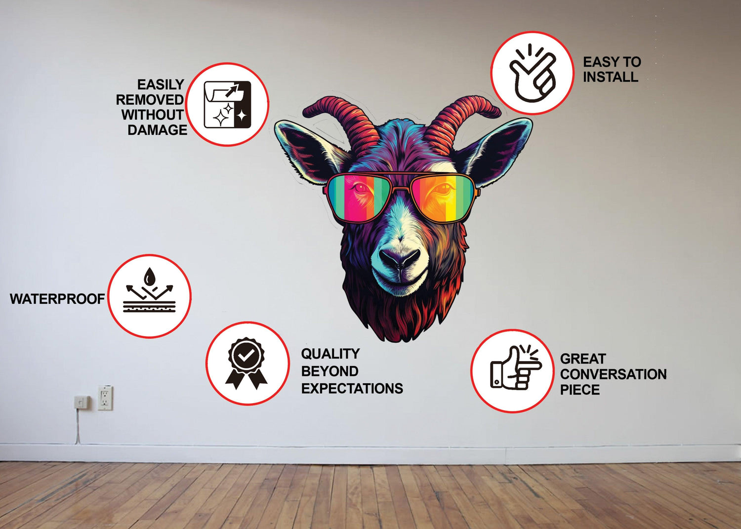Avant-Garde Goat with Sunglasses Wall Decal - 8 x 8 is backordered and will ship as soon as it is back in stock.
