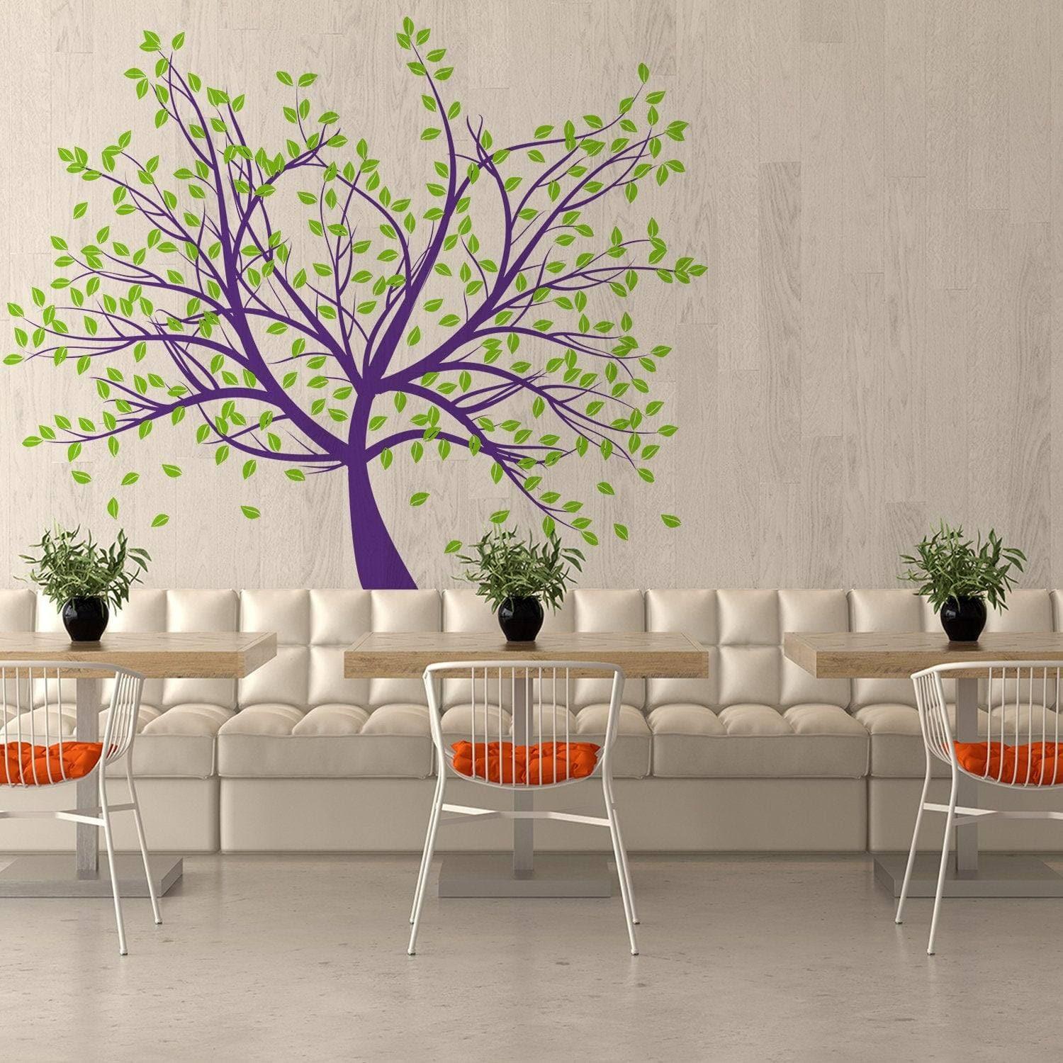 Nature's Serenity tree vinyl wall decal with green leaves, perfect for home decor, easy to install, and durable.