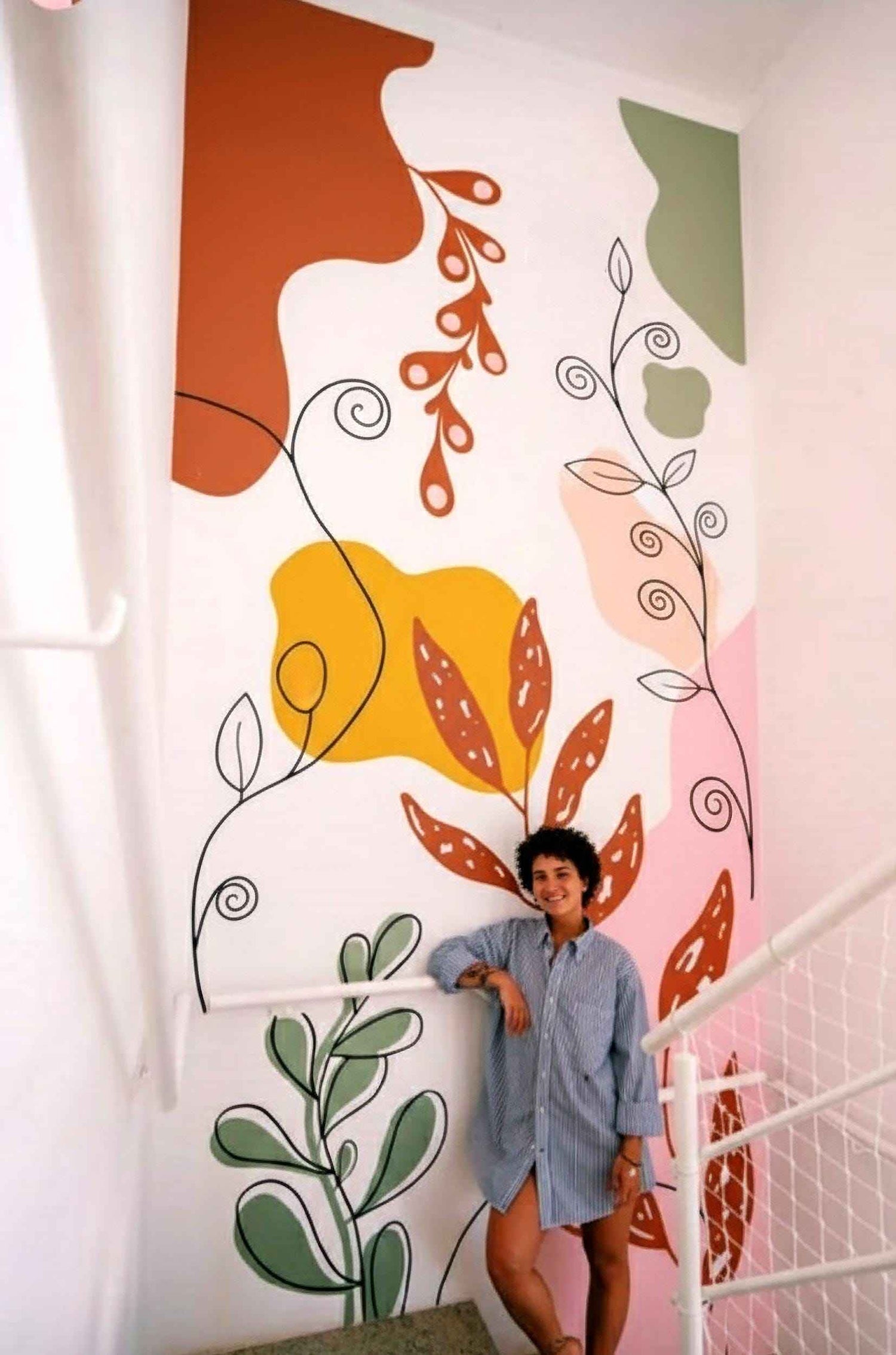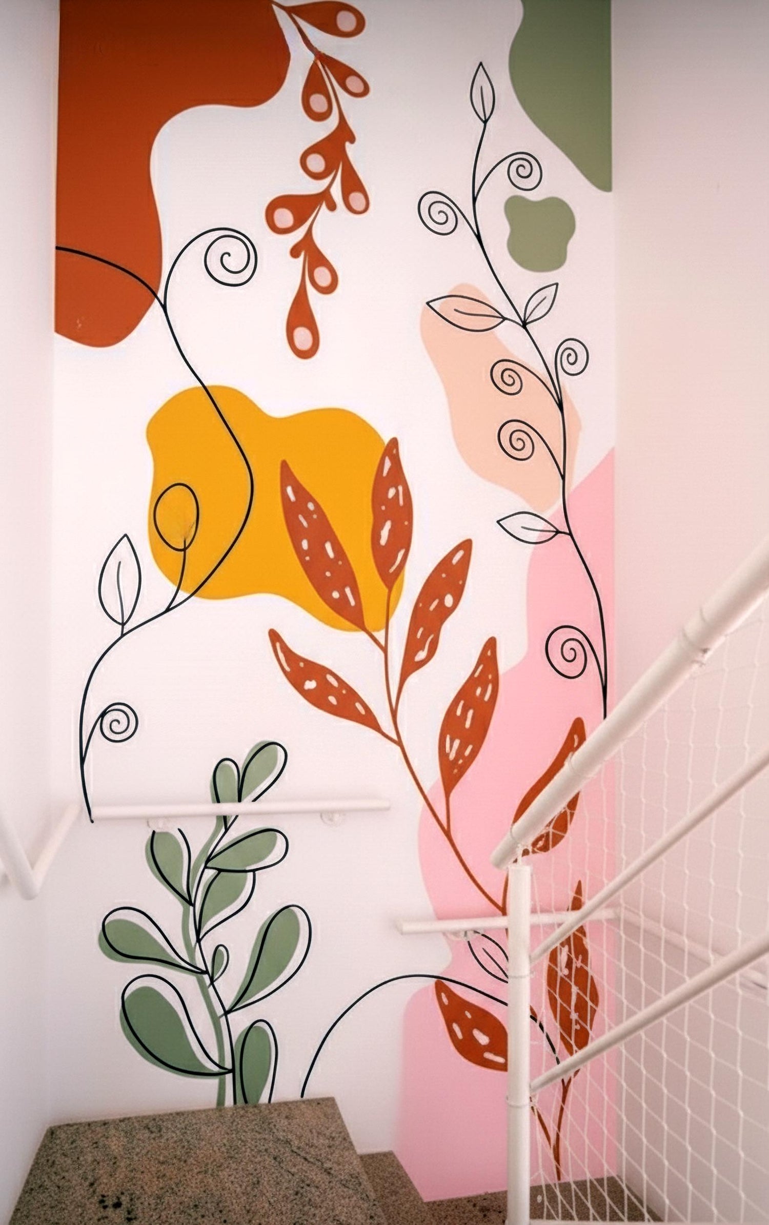 The full design fits beautifully on a wall area approximately **80–140 in (200–350 cm)** wide or similar vertical surfaces such as staircases, hallways, or studio walls.