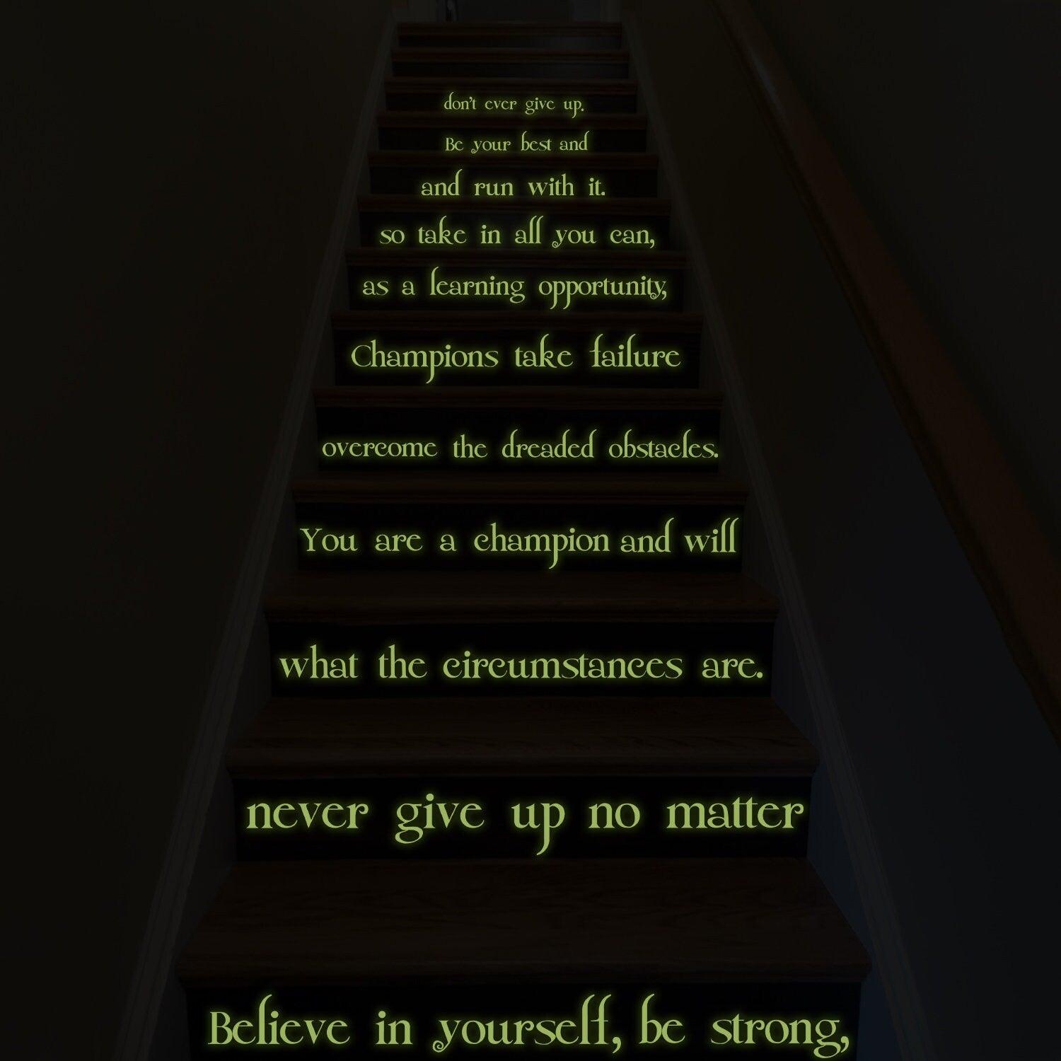 Believe In Yourself Stair Glow In Dark Vinyl Sticker - Night Glowing Motivation Love Home Quote Decal