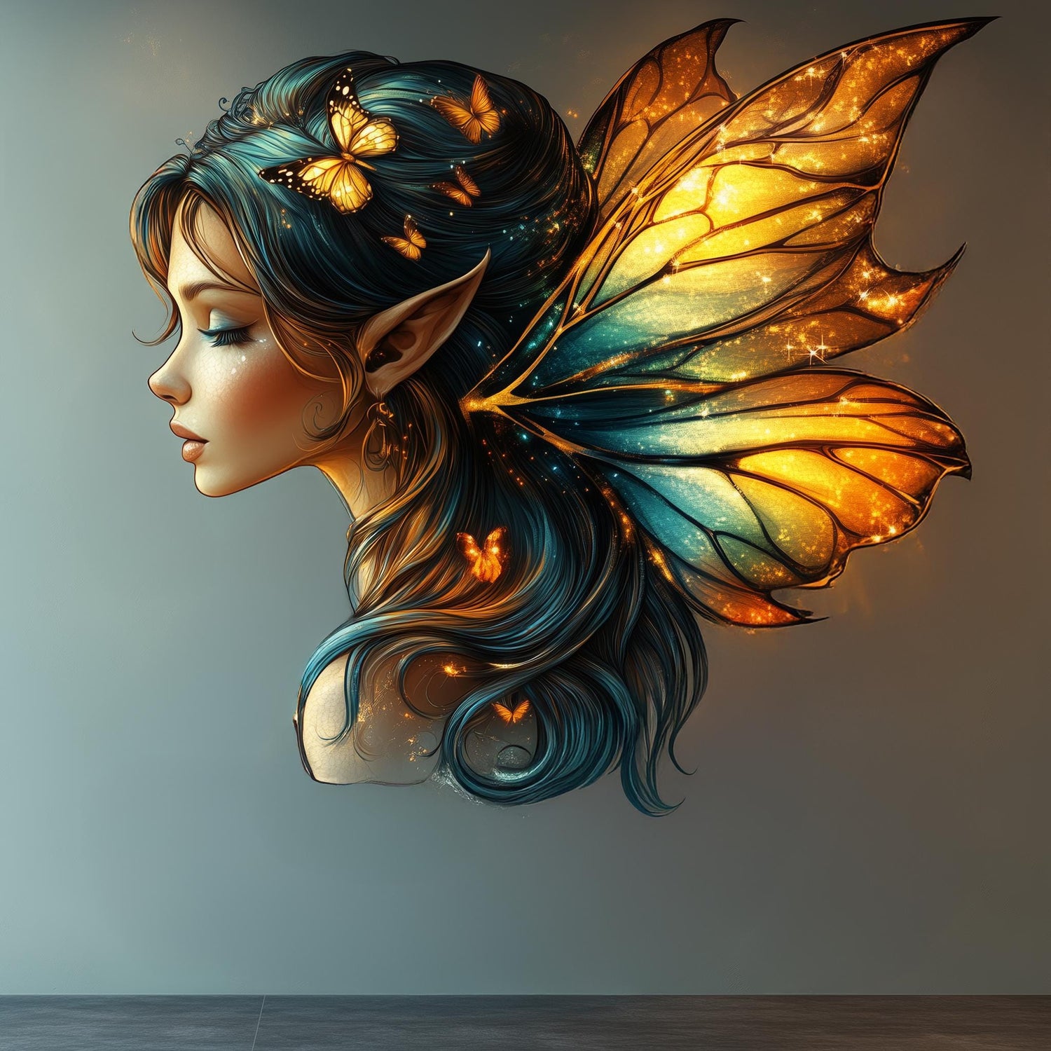 - **Unique & Dreamy Design**: A **beautiful fairy with luminous butterfly wings**, detailed with golden light.