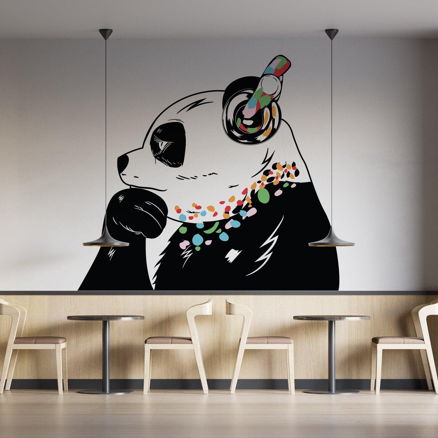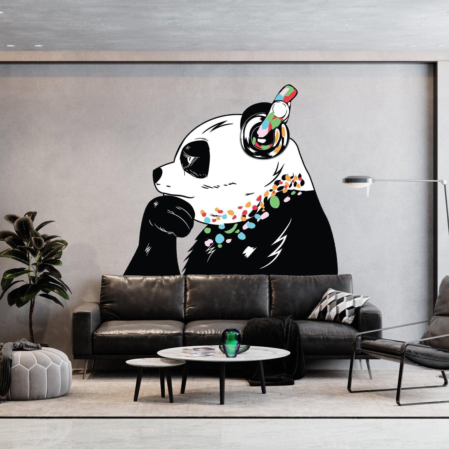 Panda wall art sticker featuring a panda bear in headphones, designed for creative home decoration.