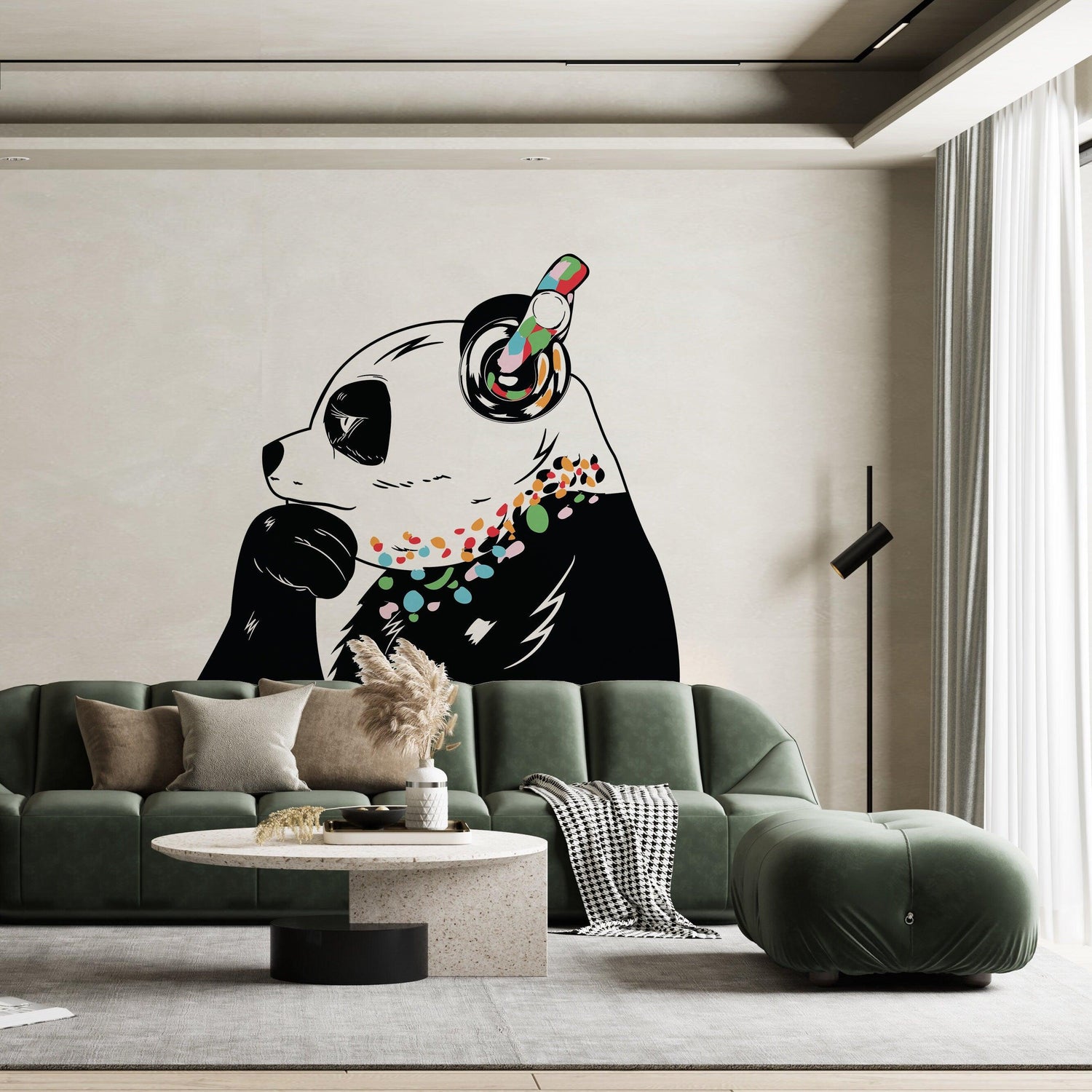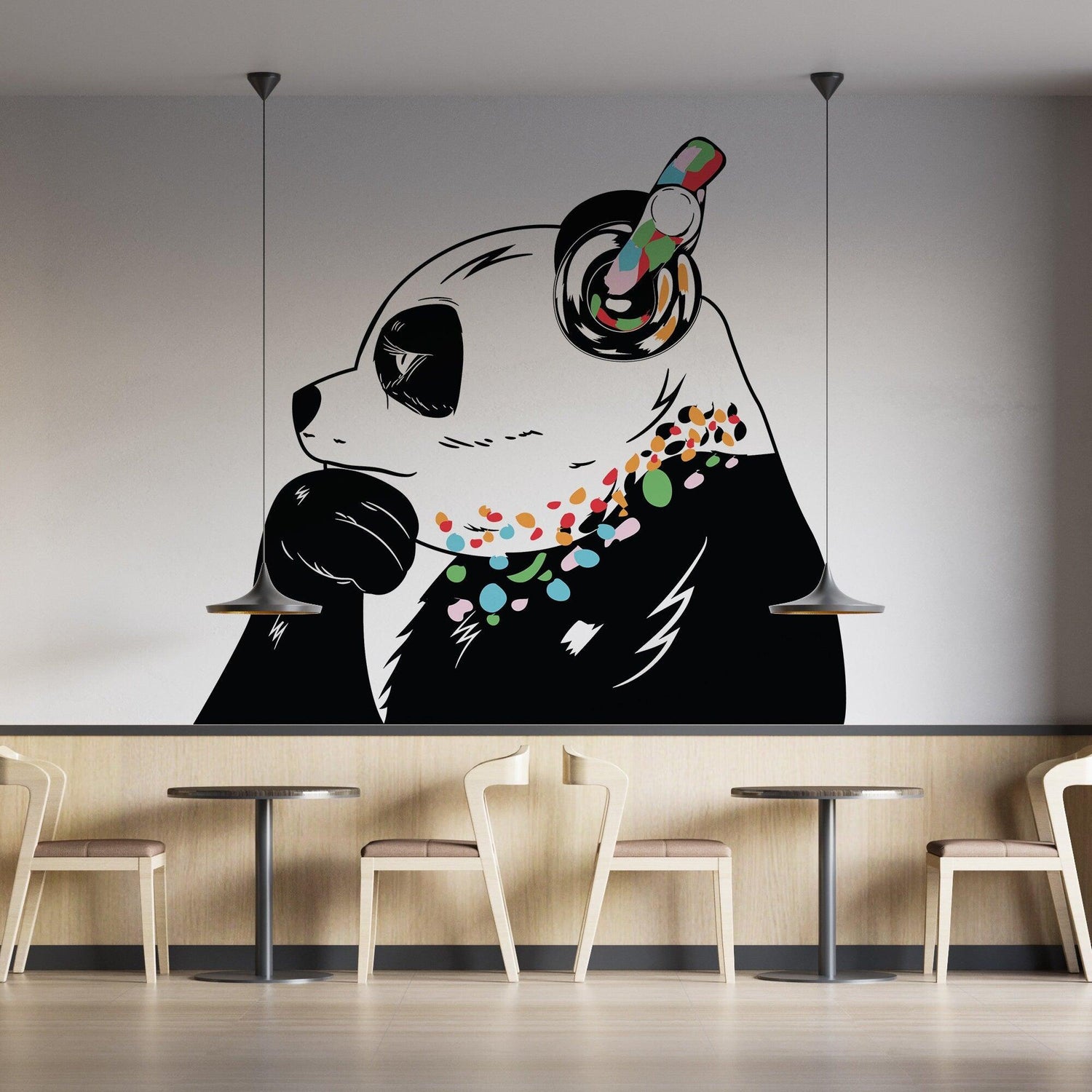 Panda mit Kopfhörern Aufkleber - Inspiriert von Banksy Graffiti Wandaufkleber