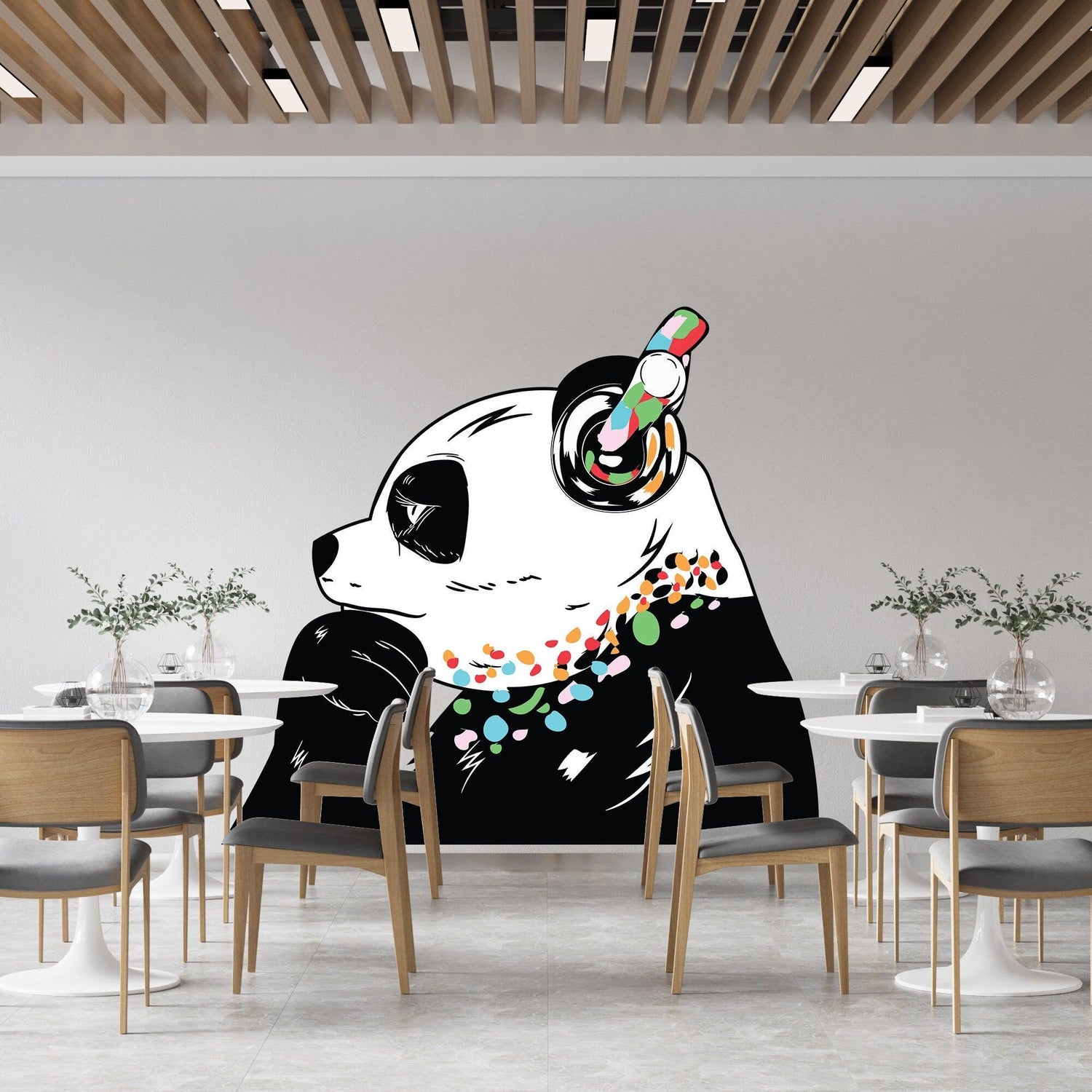 Suchen Sie nach einer einzigartigen und auffälligen Möglichkeit, Ihre Wände zu dekorieren? Dann sind diese Panda-Aufkleber mit Kopfhörern genau das Richtige für Sie! Inspiriert von der kultigen Straßenkunst von Banksy zeigen diese Aufkleber einen verspielten Panda mit Kopfhörern, der jedem Raum einen Hauch von Verspieltheit verleiht.