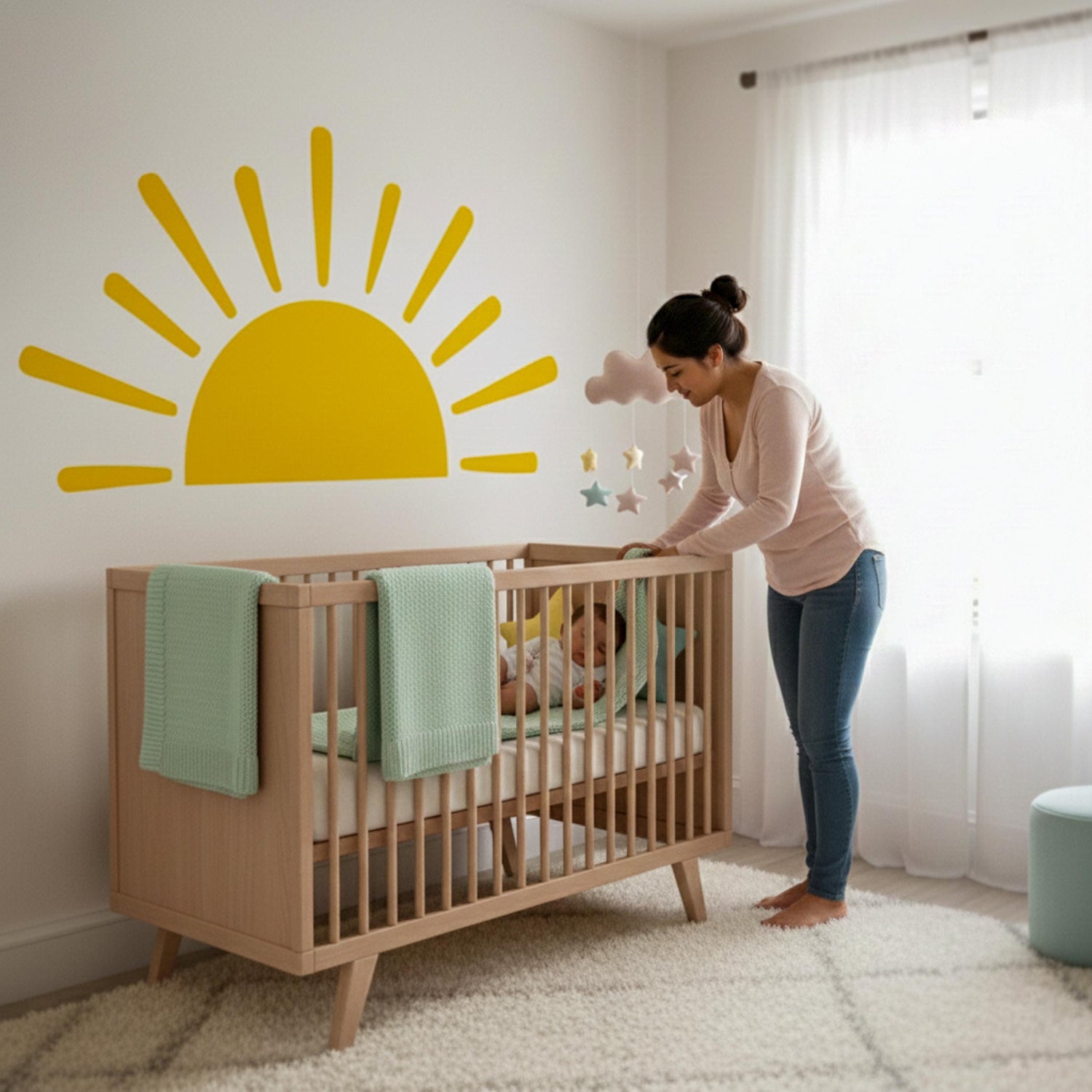 Imagine waking up to a burst of sunshine every single day, regardless of the weather outside. This rising sun wall decal is the perfect way to infuse your space with instant happiness, warmth, and positivity. Installing this simple yet striking design immediately creates a cheerful and cozy atmosphere.