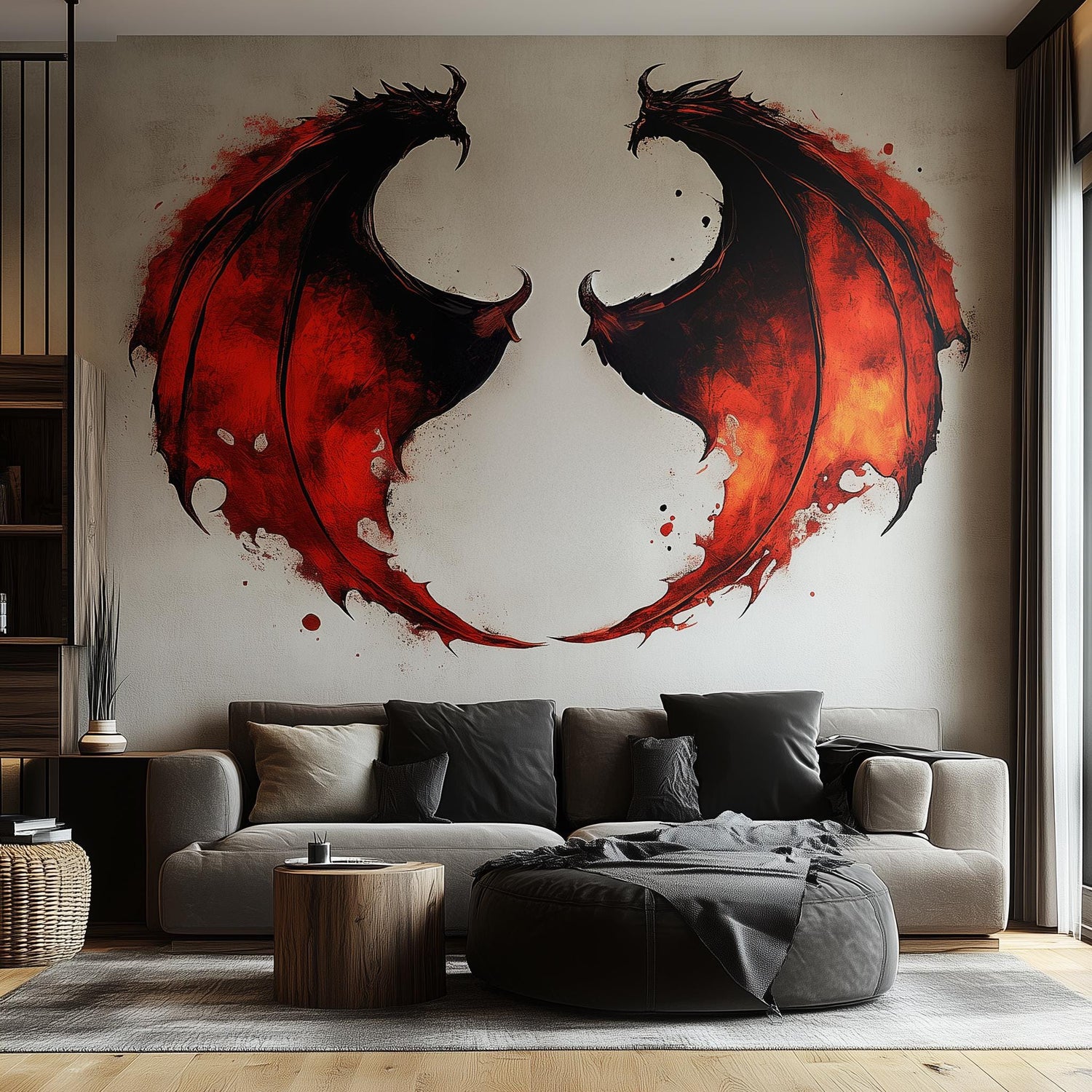 Unleash the power of a dragon in your space with this striking dragon wing wall sticker and fiery fantasy decal! 🐉🔥 Featuring bold, blood-red a,nd black dragon wings with artistic detail, this wall art is perfect for fantasy lovers and anyone looking to make a bold statement in their decor.