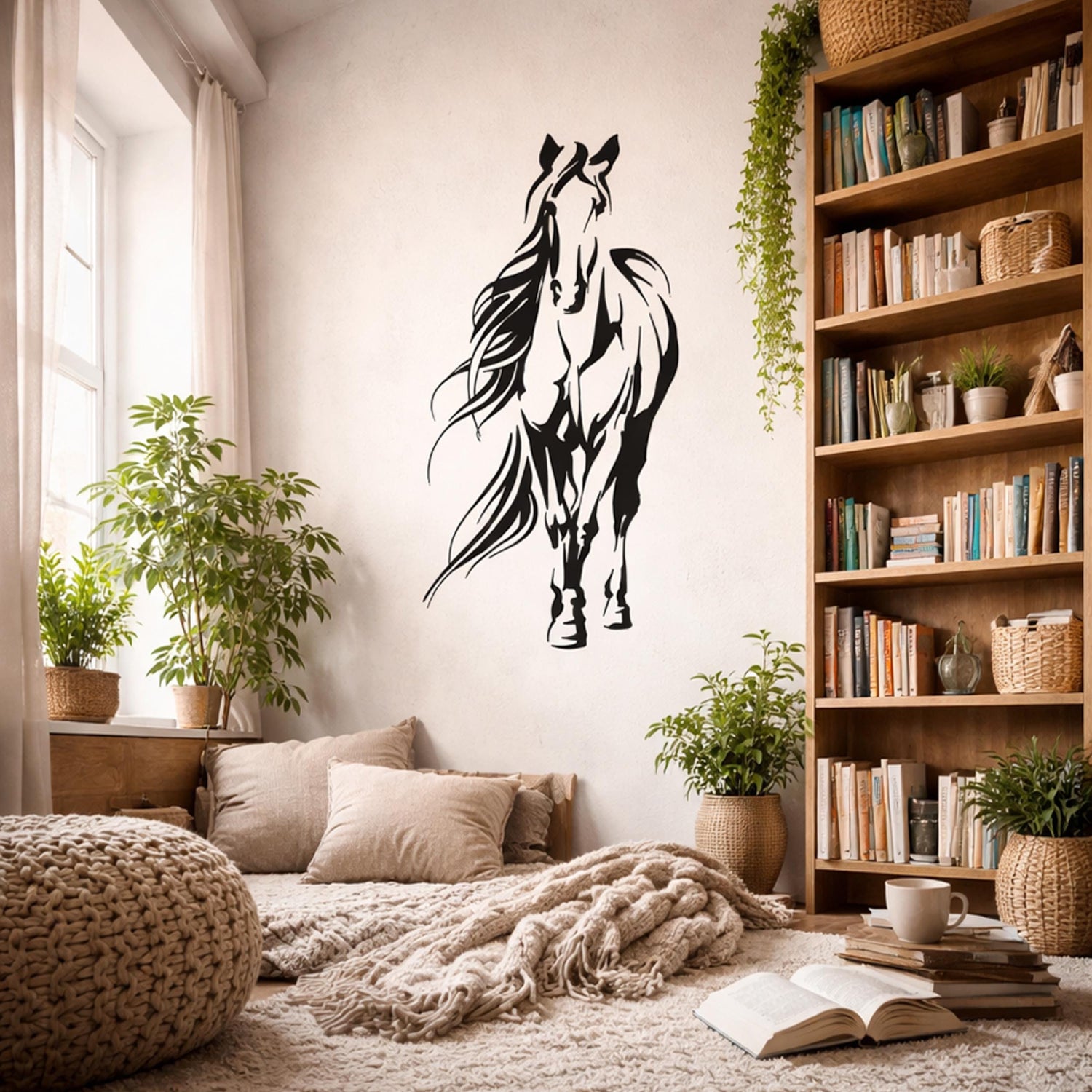 * Dynamic Motion Style: The flowing lines of the mane and tail create a sense of life and energy on your wall.