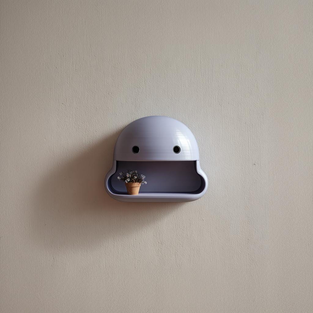 One 3D printed wall mounted kawaii face shelf. Plant and pot shown in photos are for styling only and not included. Mounting hardware is not included; please use suitable anchors for your wall type.