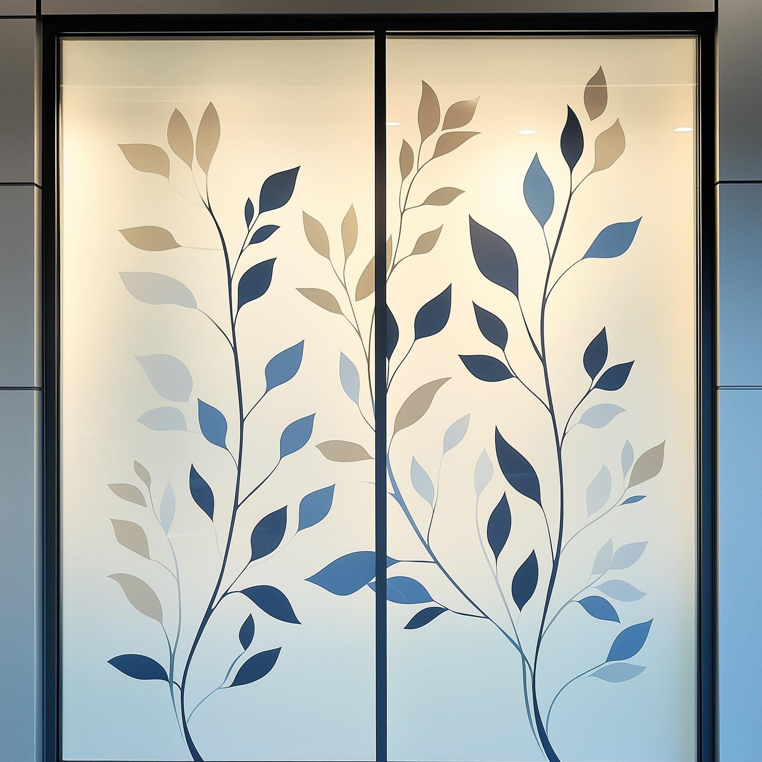 Frosted Glass Decal with Multi-Color Leaf Design | Privacy Window Film Sticker for Office, Doors & Partitions | Etched Glass Sticker