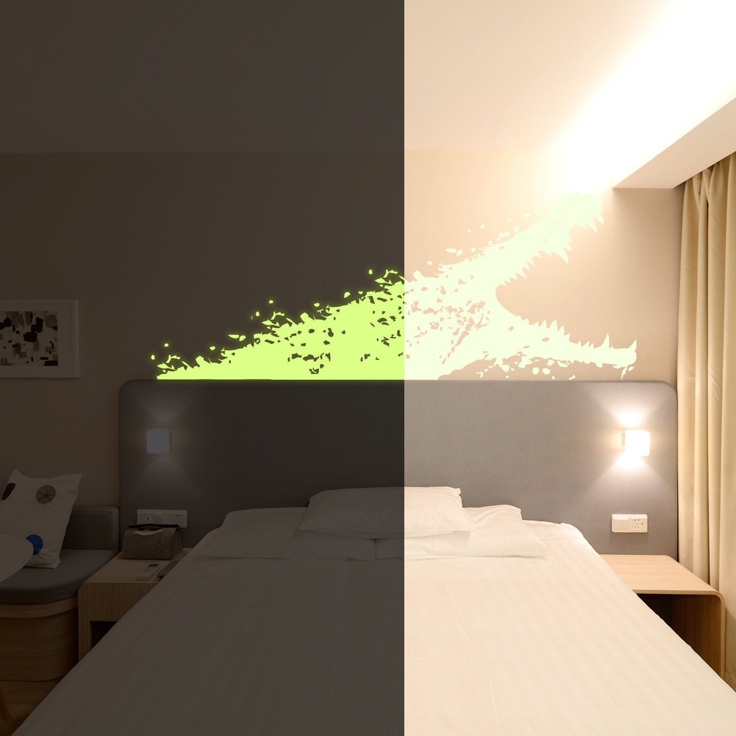 Dieser Aufkleber aus hochwertigem Vinyl lässt sich leicht anbringen und entfernen, ohne Rückstände oder Schäden an Ihren Wänden zu hinterlassen. Das nachts leuchtende Alligator-Design verleiht jedem Raum ein lustiges und verspieltes Element und ist daher ideal für Kinderzimmer, Spielzimmer oder sogar eine Themenparty.
