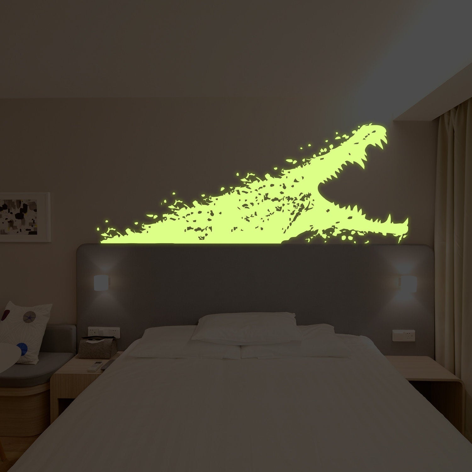 Verwandeln Sie Ihr Zimmer mit unserem im Dunkeln leuchtenden Alligator-Wandaufkleber in einen leuchtenden Dschungel. Bestellen Sie jetzt und verleihen Sie Ihrem Raum einen Hauch von Spannung und Abenteuer!
