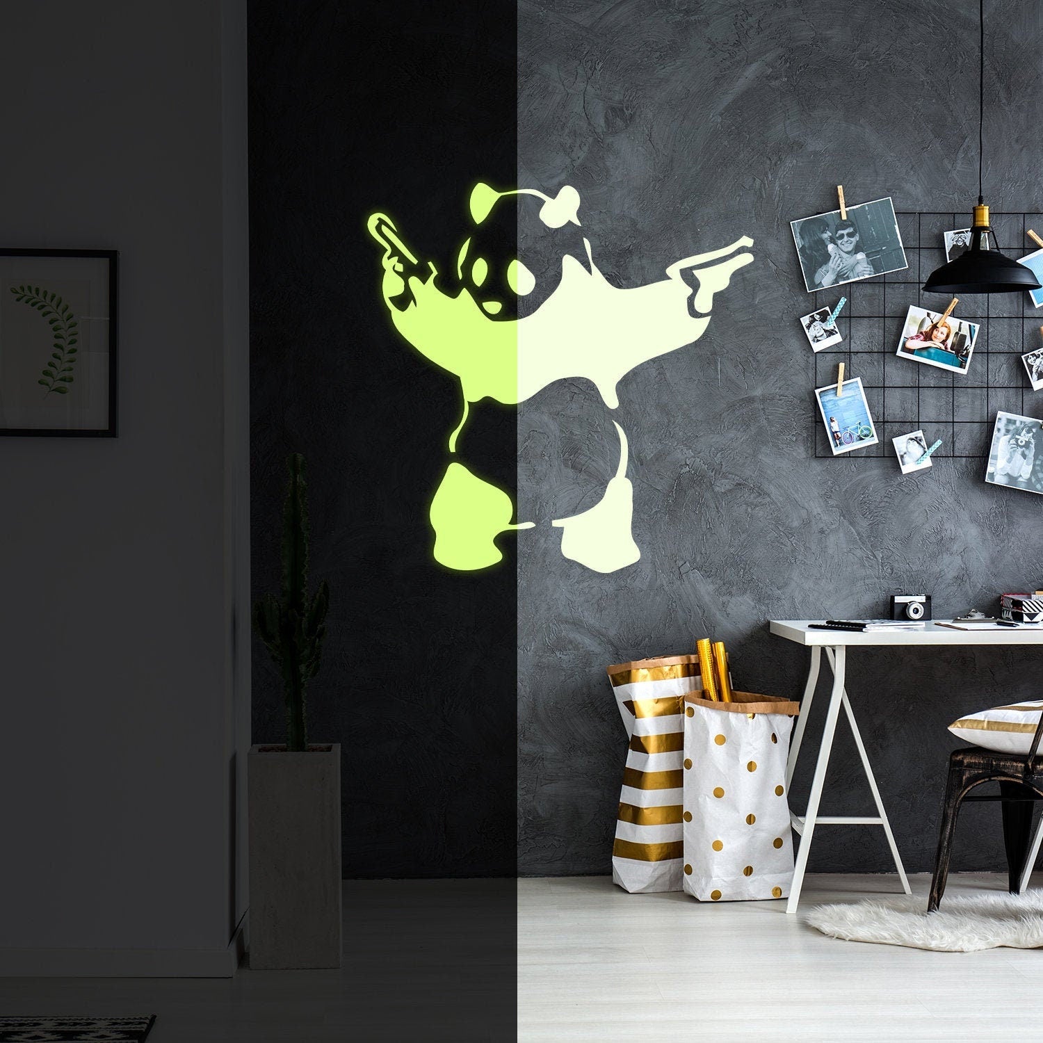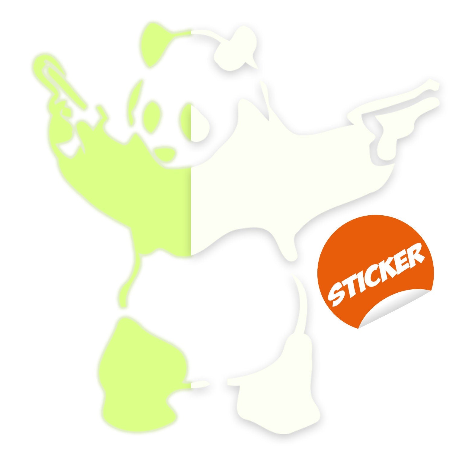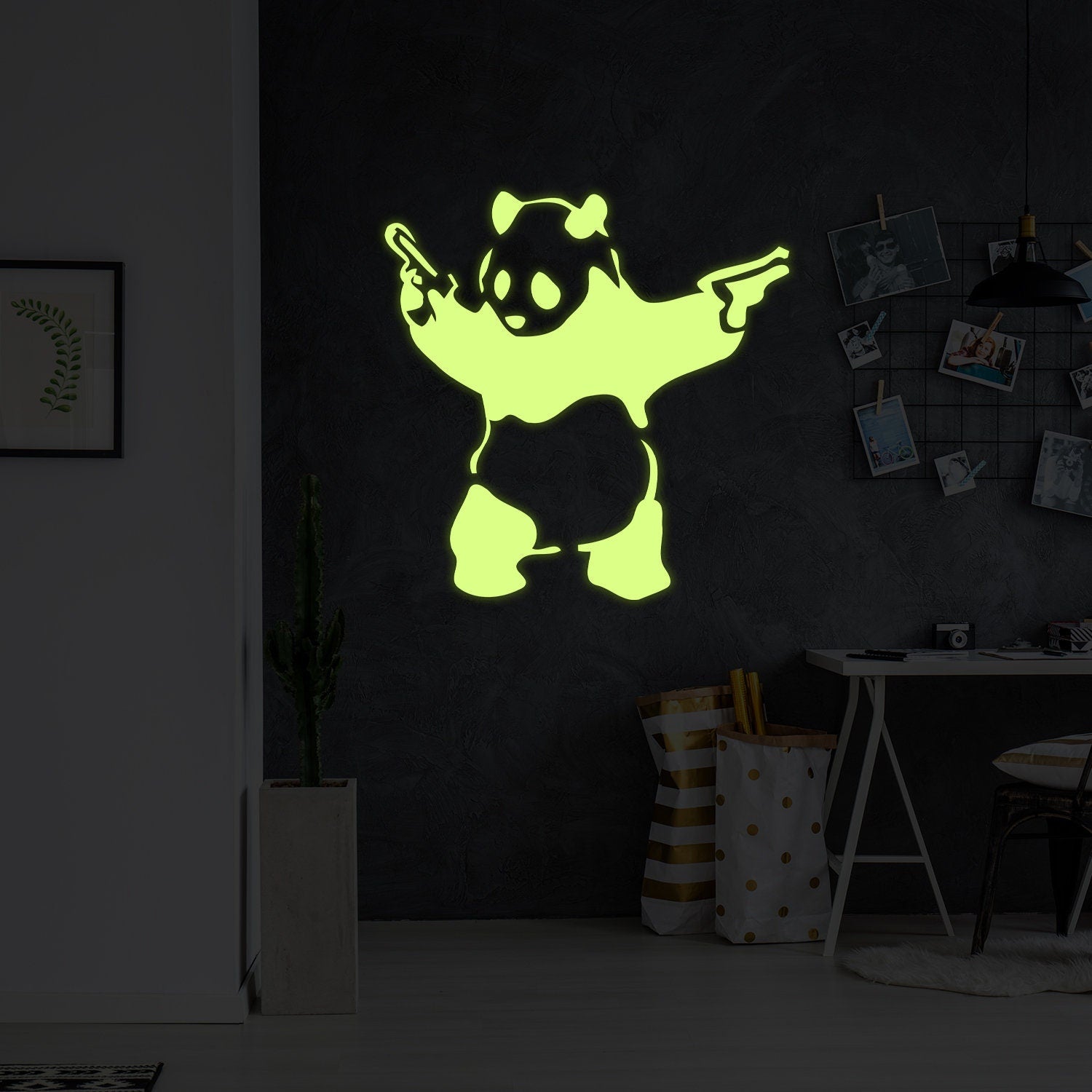 Wandaufkleber „Banksy Panda mit schießenden Waffen“, leuchtet im Dunkeln