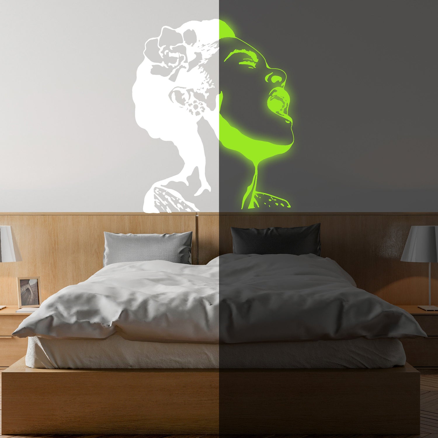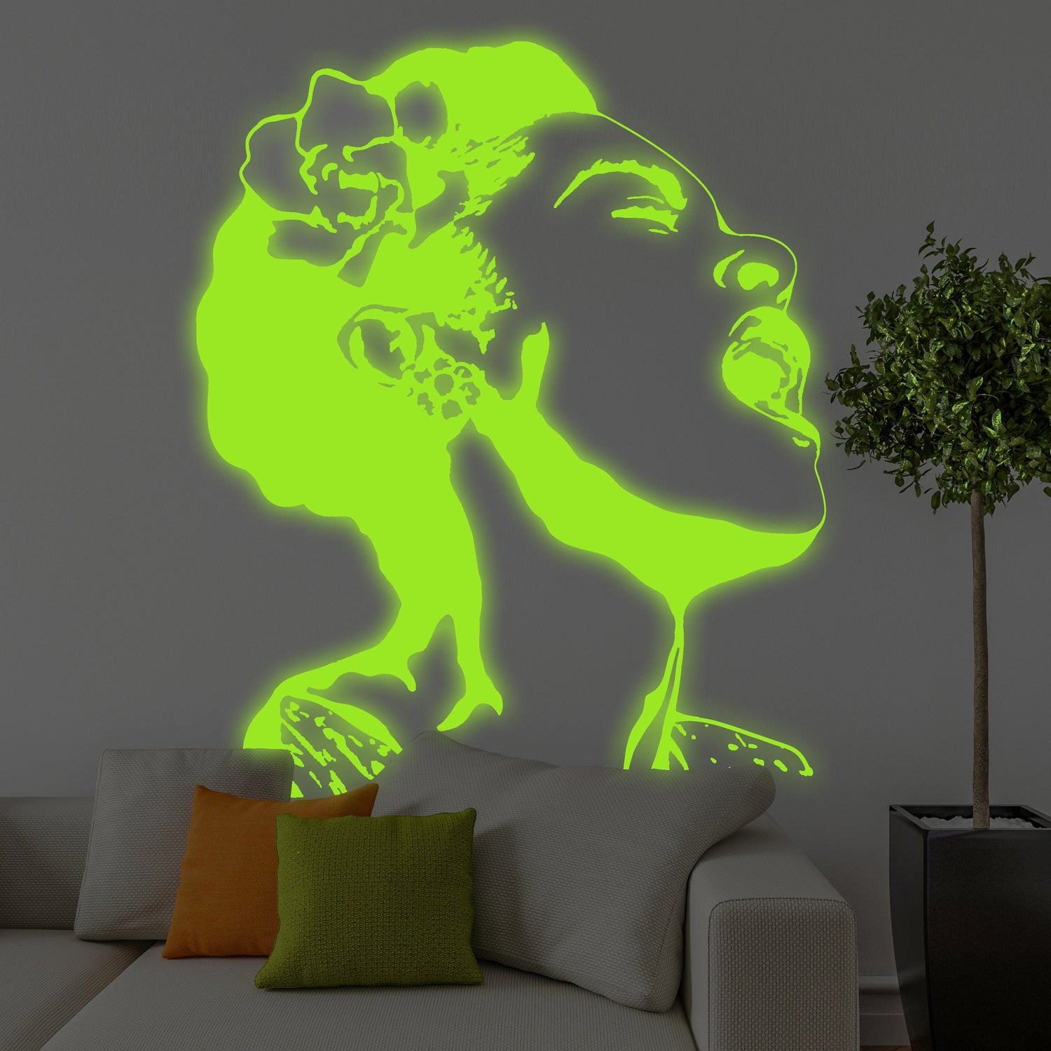 Im Dunkeln leuchtendes „Life Is Beautiful“-Wandtattoo, Banksy-Streetart, leuchtender Neon-Aufkleber für singende Frauen, Nachtlicht - 7 x 8 inches ist auf Lager und wird versandt, sobald es wieder verfügbar ist