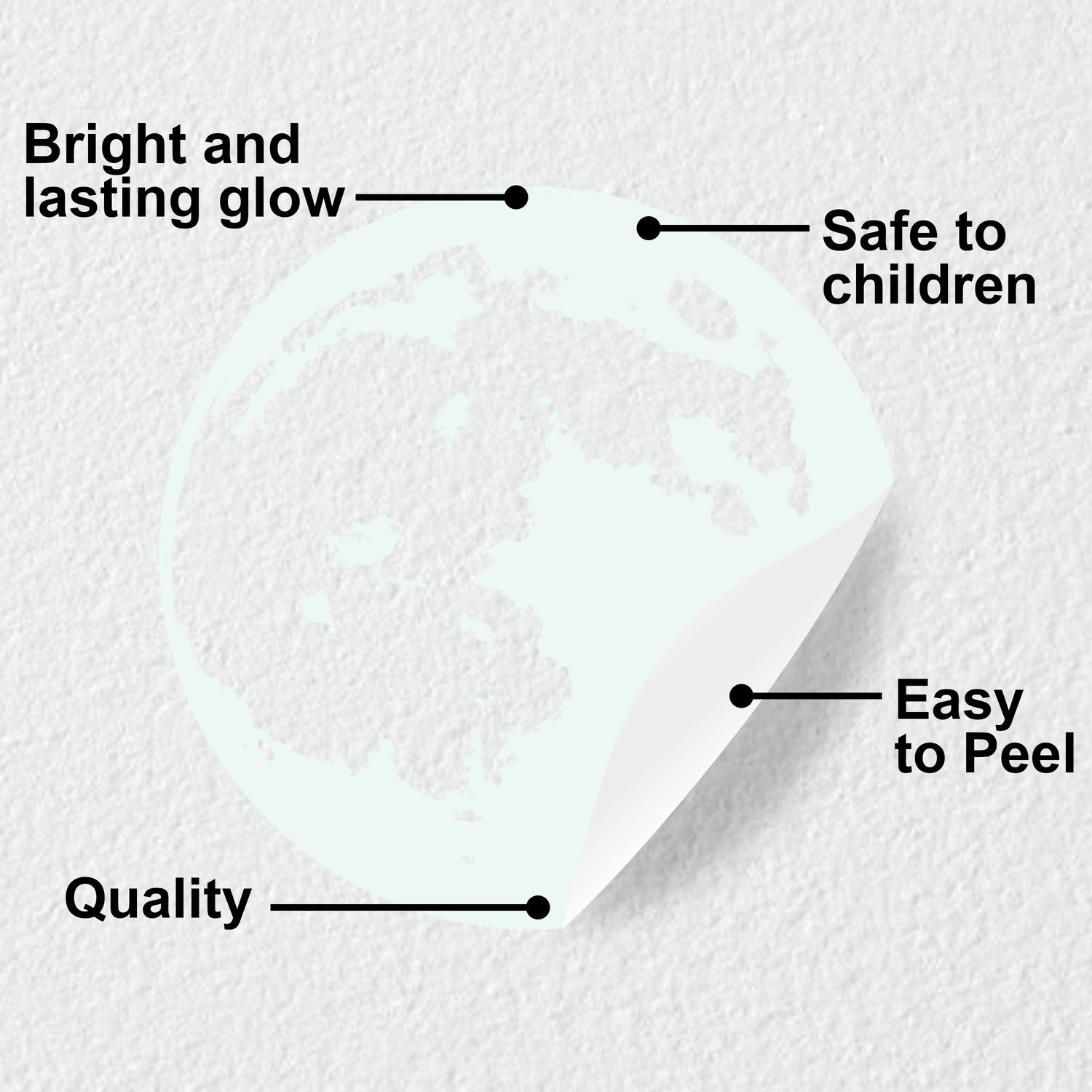 Der Mond-Wandaufkleber ist nicht nur eine schöne Dekoration, sondern erfüllt auch einen praktischen Zweck. Durch die im Dunkeln leuchtende Funktion strahlt er ein sanftes und beruhigendes Licht aus und ist somit ein perfektes Nachtlicht für Kinder. Er kann auch als unterhaltsames und lehrreiches Hilfsmittel verwendet werden, um Kindern die Mondphasen beizubringen.