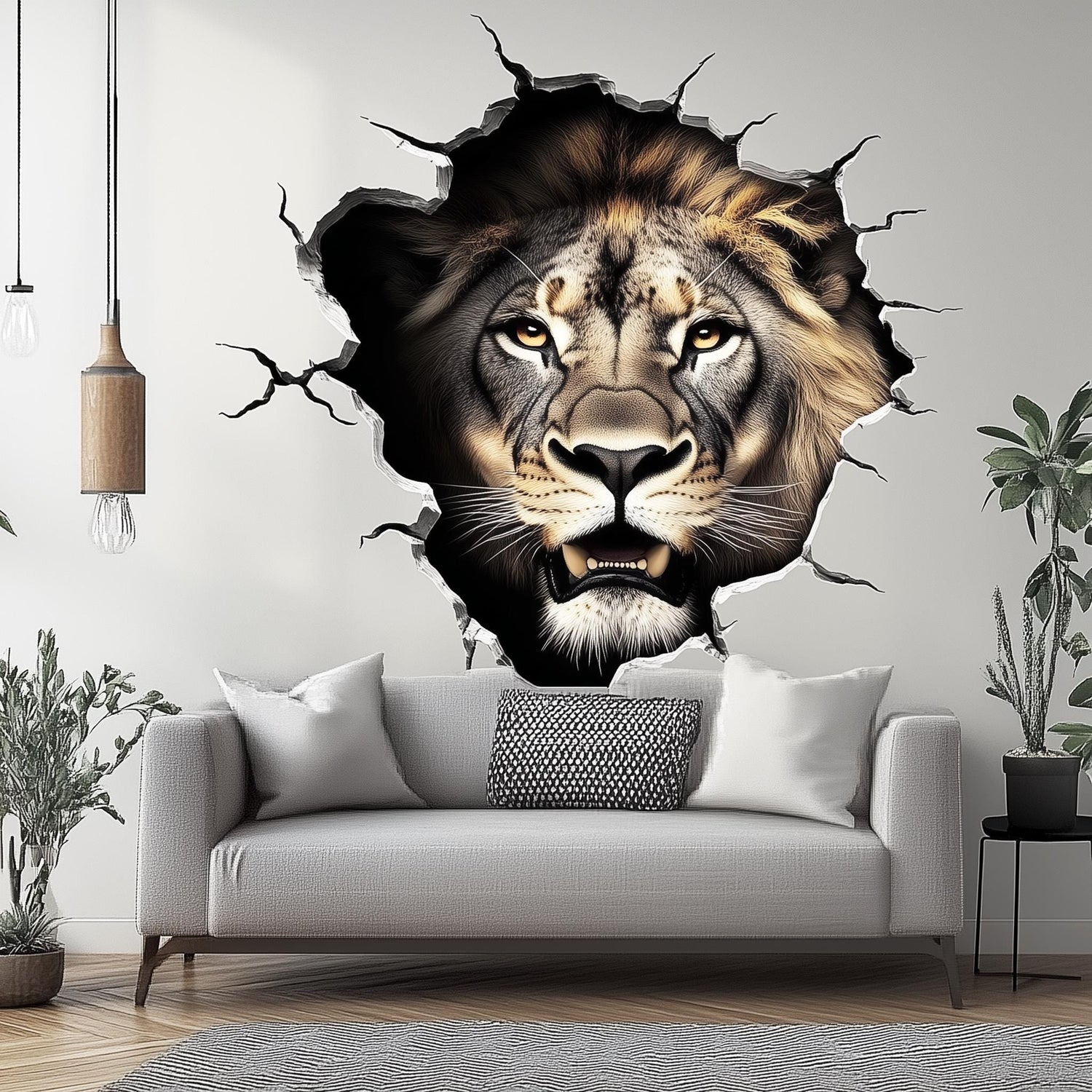 This **Lion Wall Decal** offers an extraordinary way to transform your room with minimal effort. The realistic, 3D effect of the lion bursting through the wall adds drama and excitement to your space. Whether you’re decorating a living area, an office, or a man cave, this lion decal will instantly command attention and create a conversation-worthy focal point. Plus, the decal is easy to remove or reposition, giving you flexibility with your decor.
