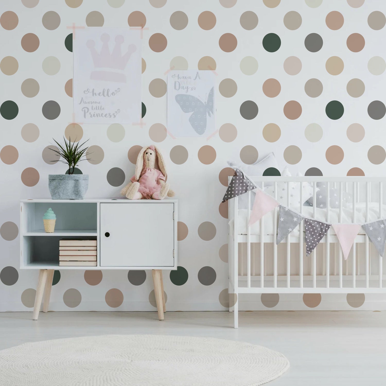 50x neutraalsed Boho Dots'i kleebised – lastetoa pastelsete ringikujuliste seinakleebiste sisekujundus - 1 tolli (3 cm) on järeltellitud ja saadetakse kohale niipea, kui see on laos tagasi.