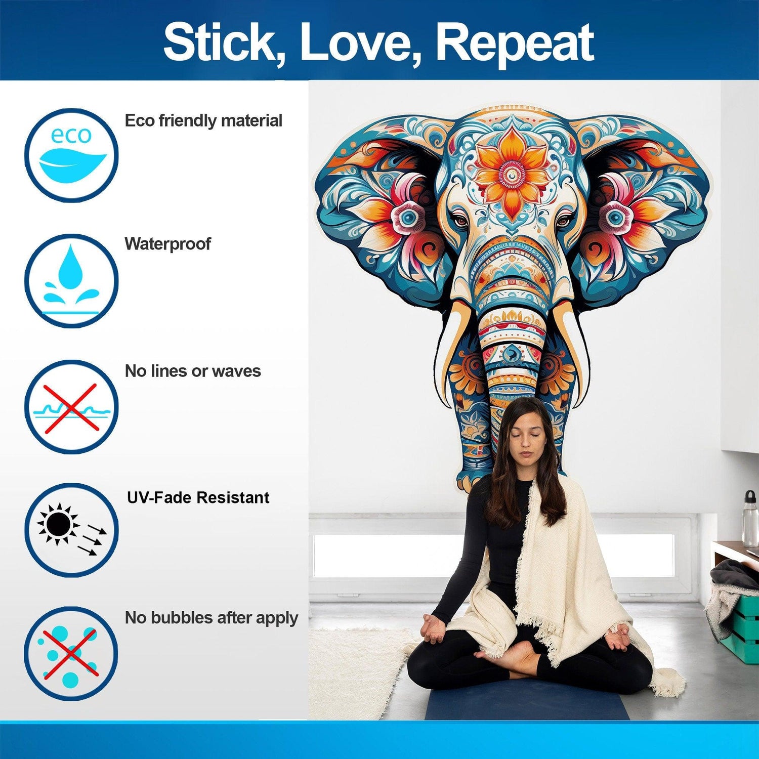 - Pikaealisus: Nõuetekohase hoolduse korral peaks teie seinakleebis püsima erksana ja paigal mitu aastat. Kui aga märkate, et servad kerkivad, vajutage need õrnalt oma kohale tagasi.