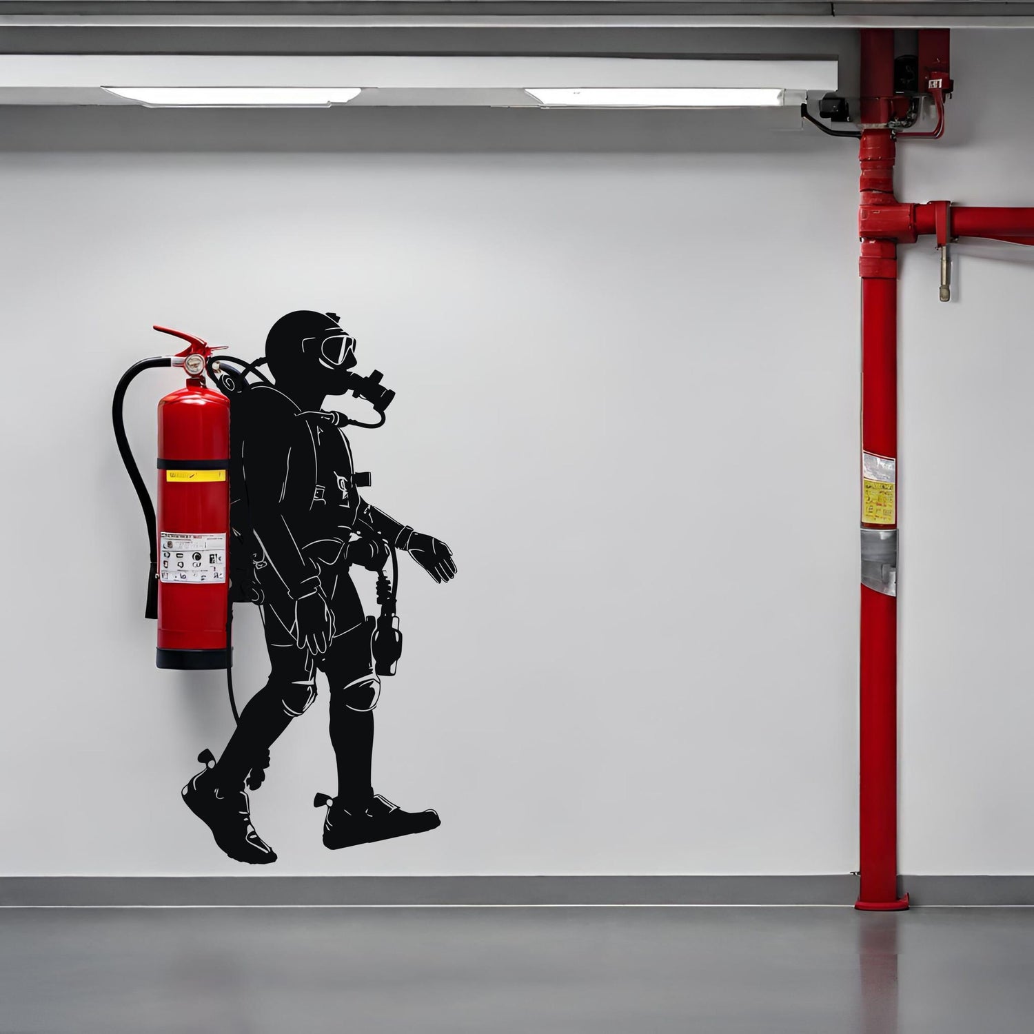 Scuba Diver Wall Sticker - Fire Extinguisher Deep Dive Silhouette