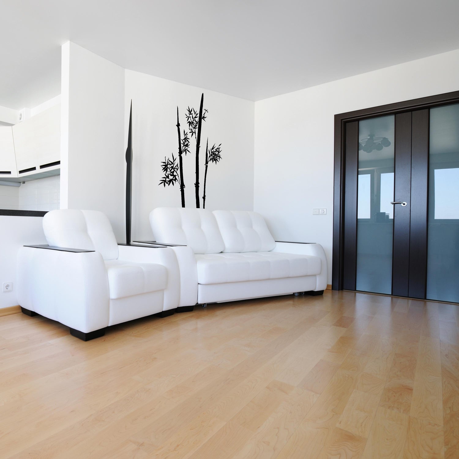 Minimalist bamboo wall decal in a cozy living room, enhancing decor with a zen-inspired design.
