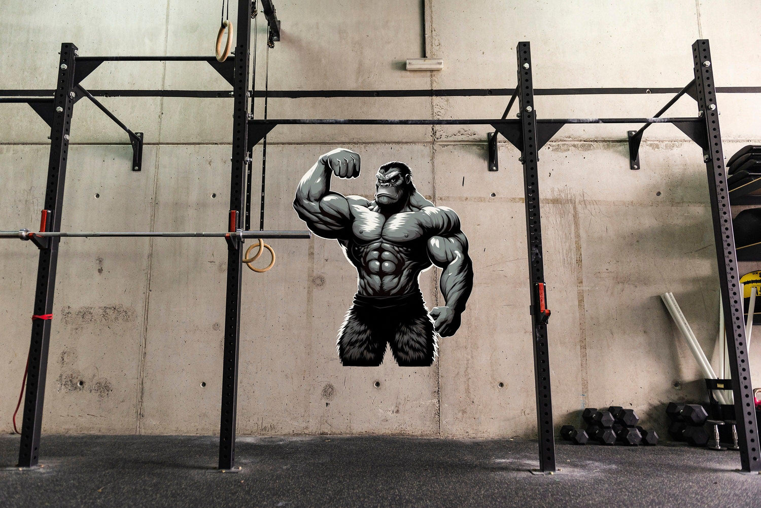 Jõusaali seinakleebis Muscled Gorilla – Power Fitnessi vinüülkleebis