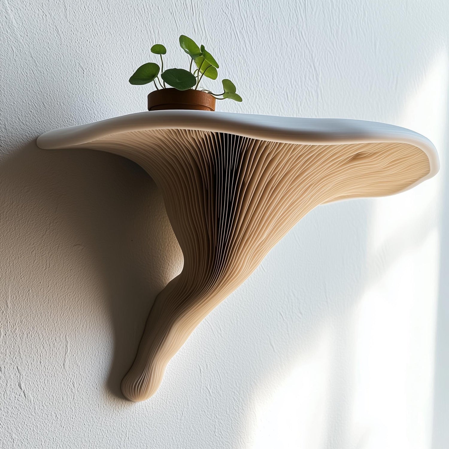 3D-prinditud seeneriiul | Moodne ujuv seinariiul | Surmav Galerina disain | Orgaaniline seinakunst | Looduskaunistused | Taimedekoratsioon