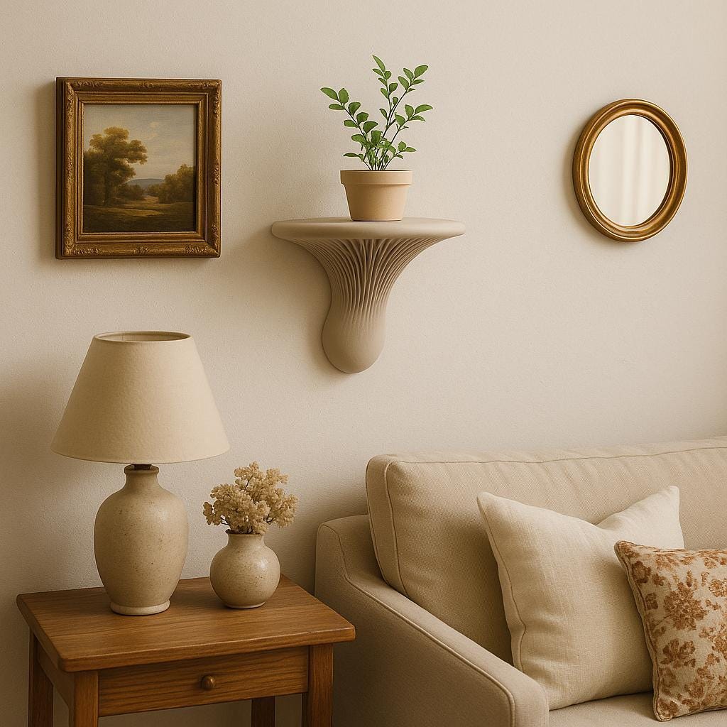 3D-prinditud seinale kujundatud seenekujuline riiul | Skulpturaalne riiul | Minimalistlik ujuv riiul | Moodne orgaaniline dekoor | Japandi Wabi Sabi seinakunstiriiulid
