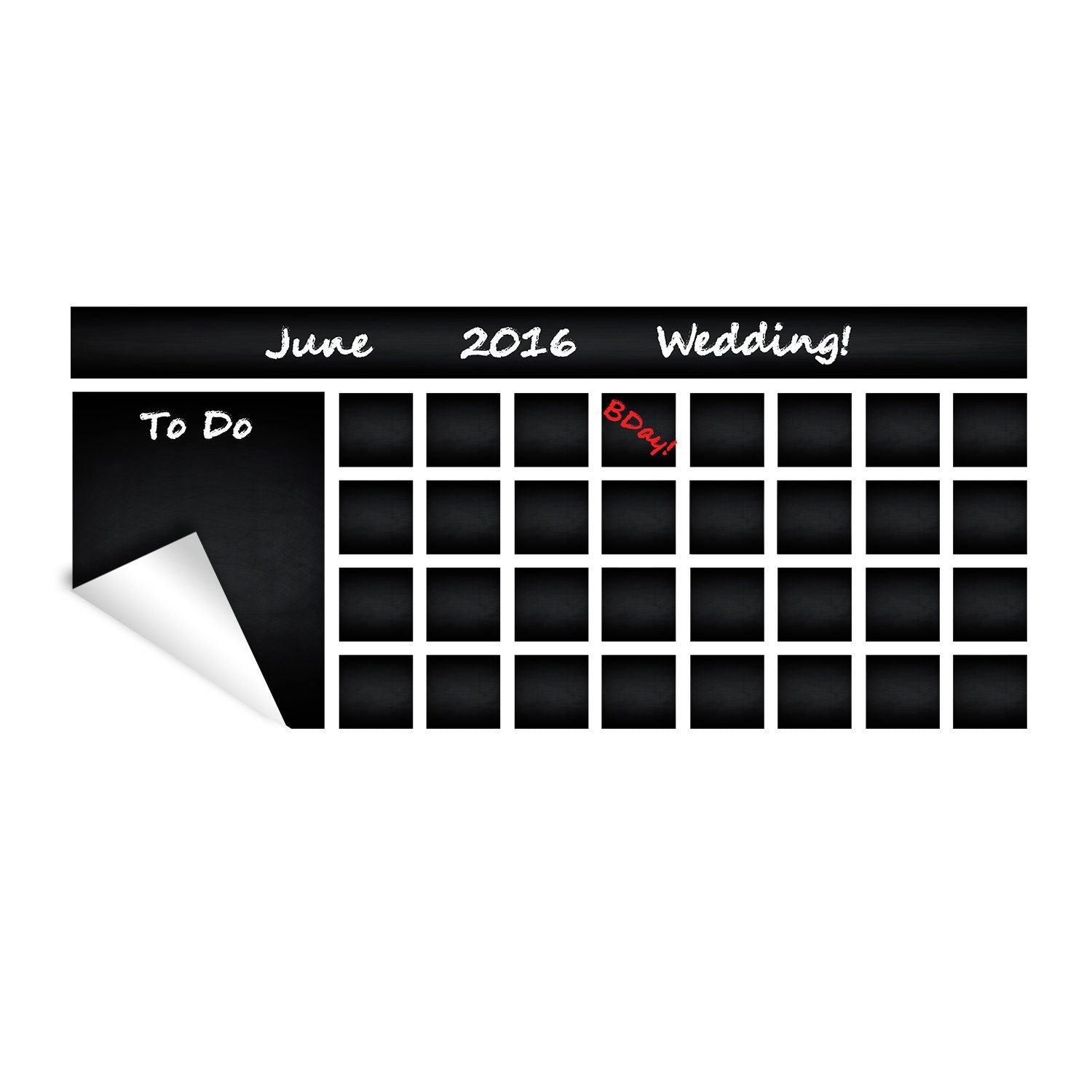 Kontorikalendri kriiditahvli vinüülkleebis – redigeeritav korraldaja kuivkustutamise kriidikleebis - 24 x 10 inches on järeltellitud ja saadetakse kohale niipea, kui see on laos tagasi.