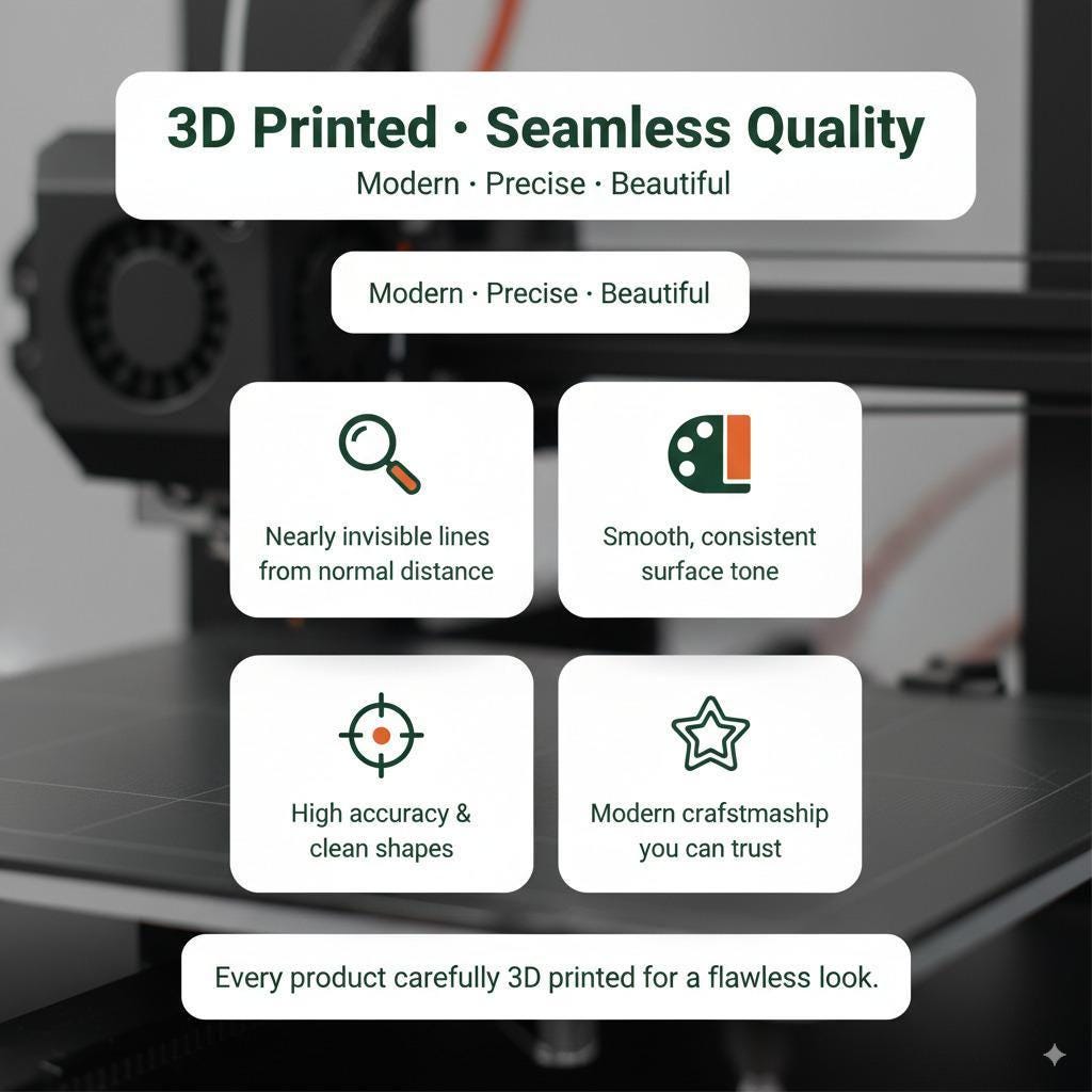 Please note that all our items are made using 3D printing technology. This means the surface will not be perfectly smooth. From a normal viewing distance, it will appear clean and neat, but up close, you will notice fine lines or small layer marks left by the printer. These are completely normal and part of the 3D printing process. Please keep this in mind before placing your order.