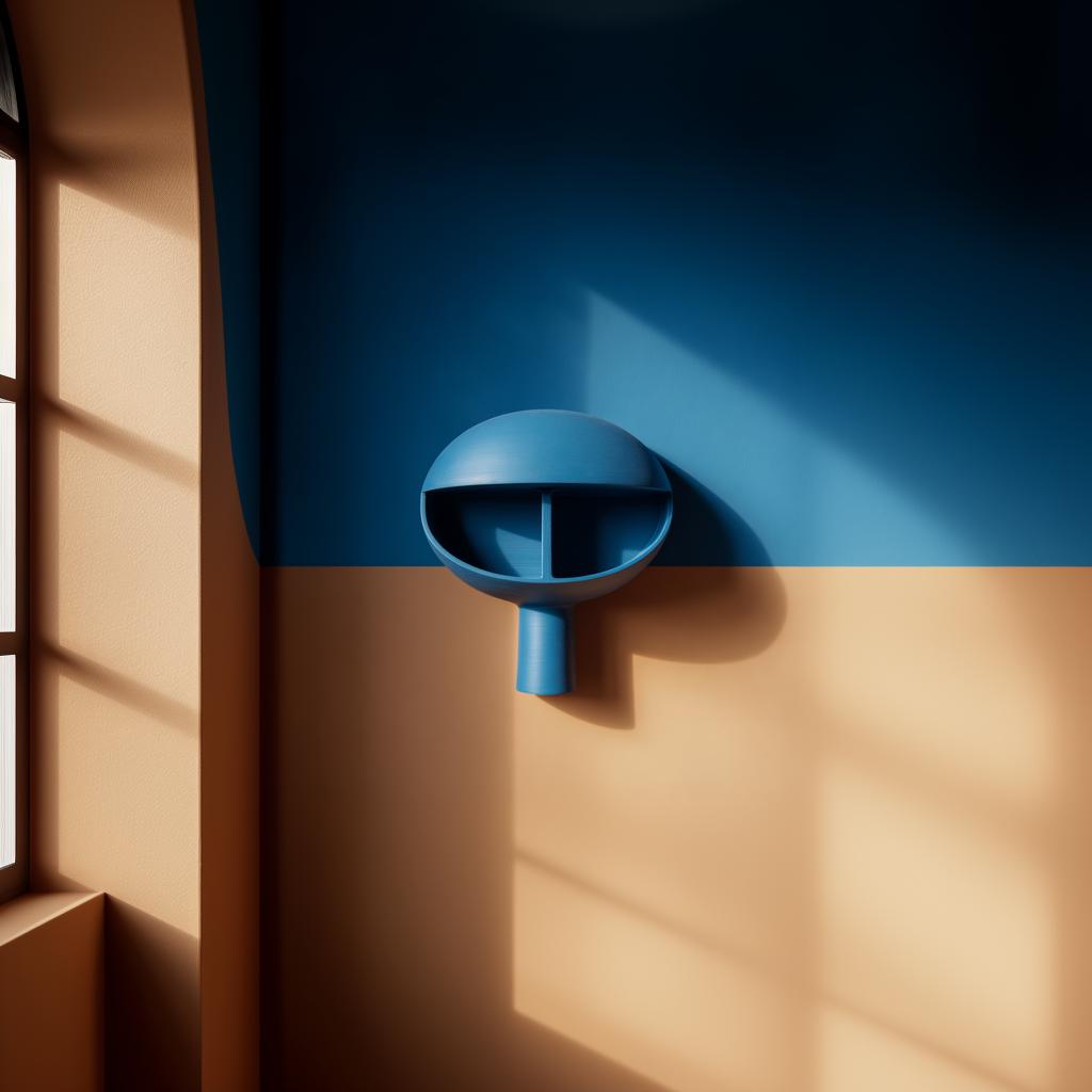 3D printed dome niche wall shelf with two split compartments and a small stem-like support, minimalist floating wall display mounted in warm natural light.