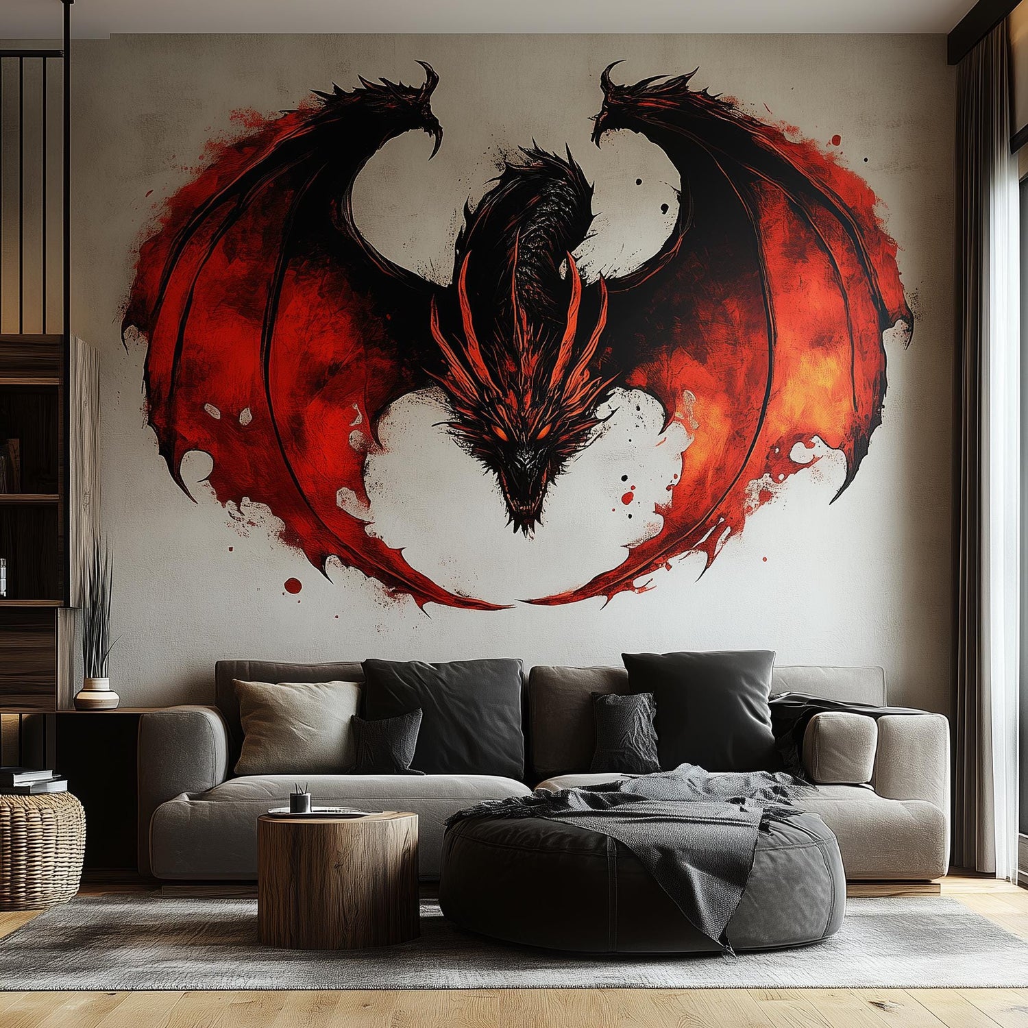Unleash the fury of the dragon in your space with this fiery dragon wall sticker and decal! 🐉🔥 Featuring bold red and black wings with striking artistic details and a fierce dragon head, this wall art brings fantasy to life, making it perfect for game rooms, living rooms, or offices.