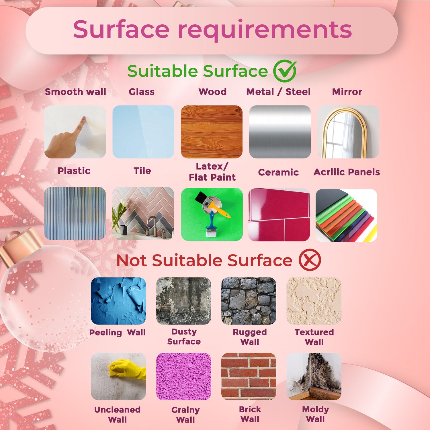 - Surface Preparation: The surface should be clean, dry, and free of dust or grease. Wipe the wall with a dry cloth and allow any freshly painted surfaces to cure for at least 3-4 weeks before applying the sticker.