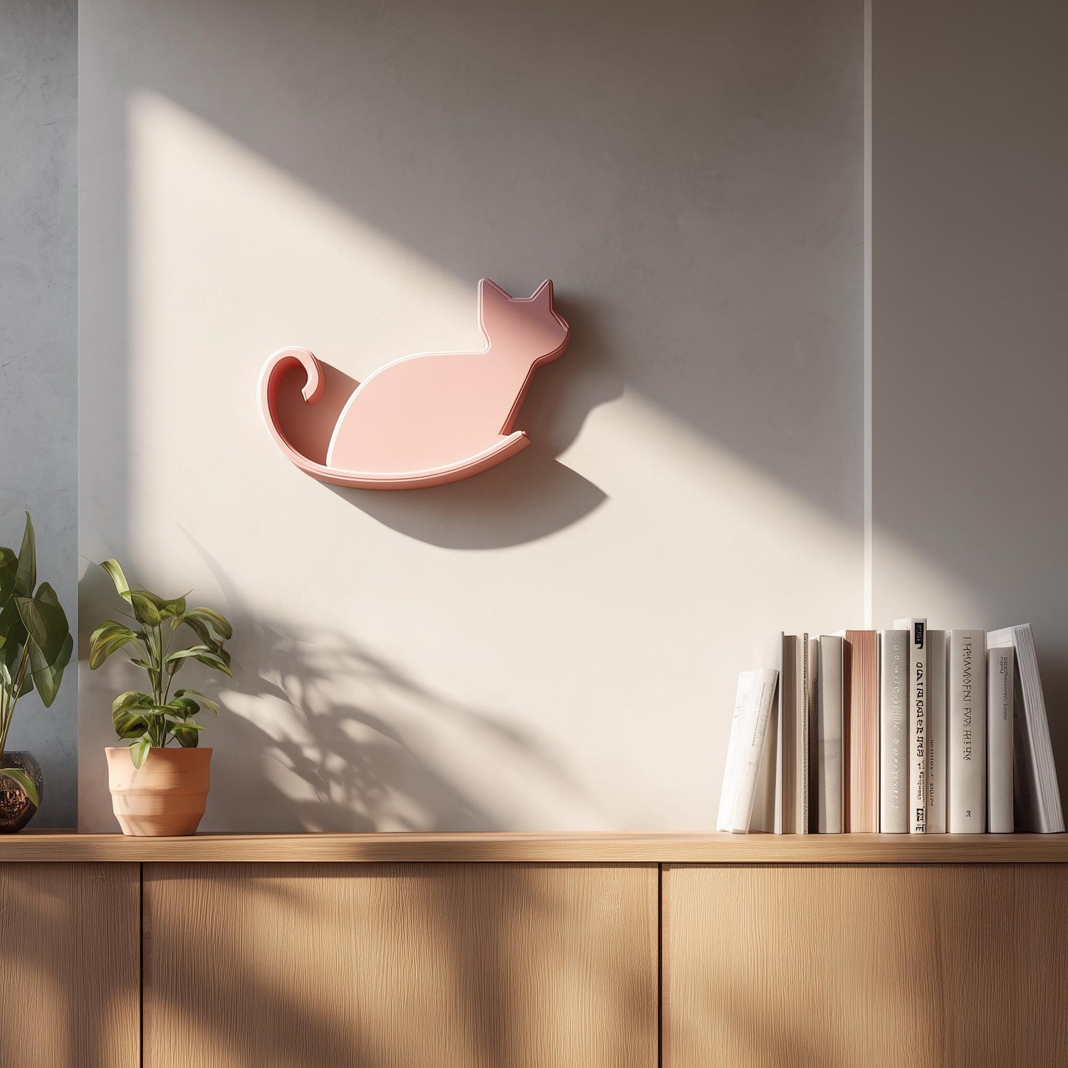 This 3D printed cat-shaped wall shelf brings a touch of charm and creativity to any space. Designed with a graceful silhouette of a cat, it’s perfect for displaying small plants, candles, or decorative items while adding a playful, modern aesthetic to your home decor.