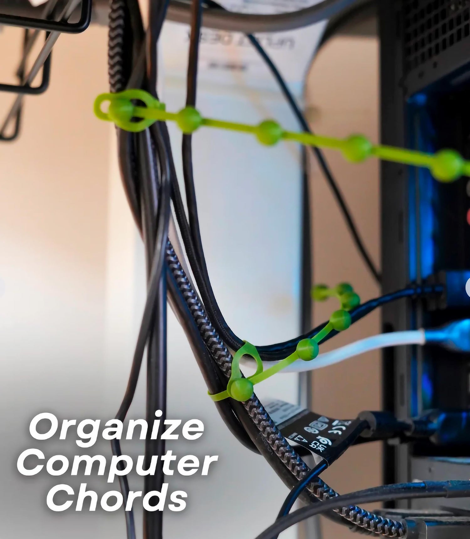 ✔ **Functional Cable Ties** – Each "string" tightens around **computer cords, chargers, or wires** for easy cable management.
